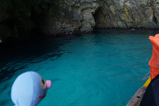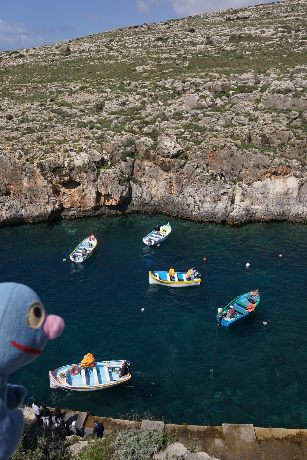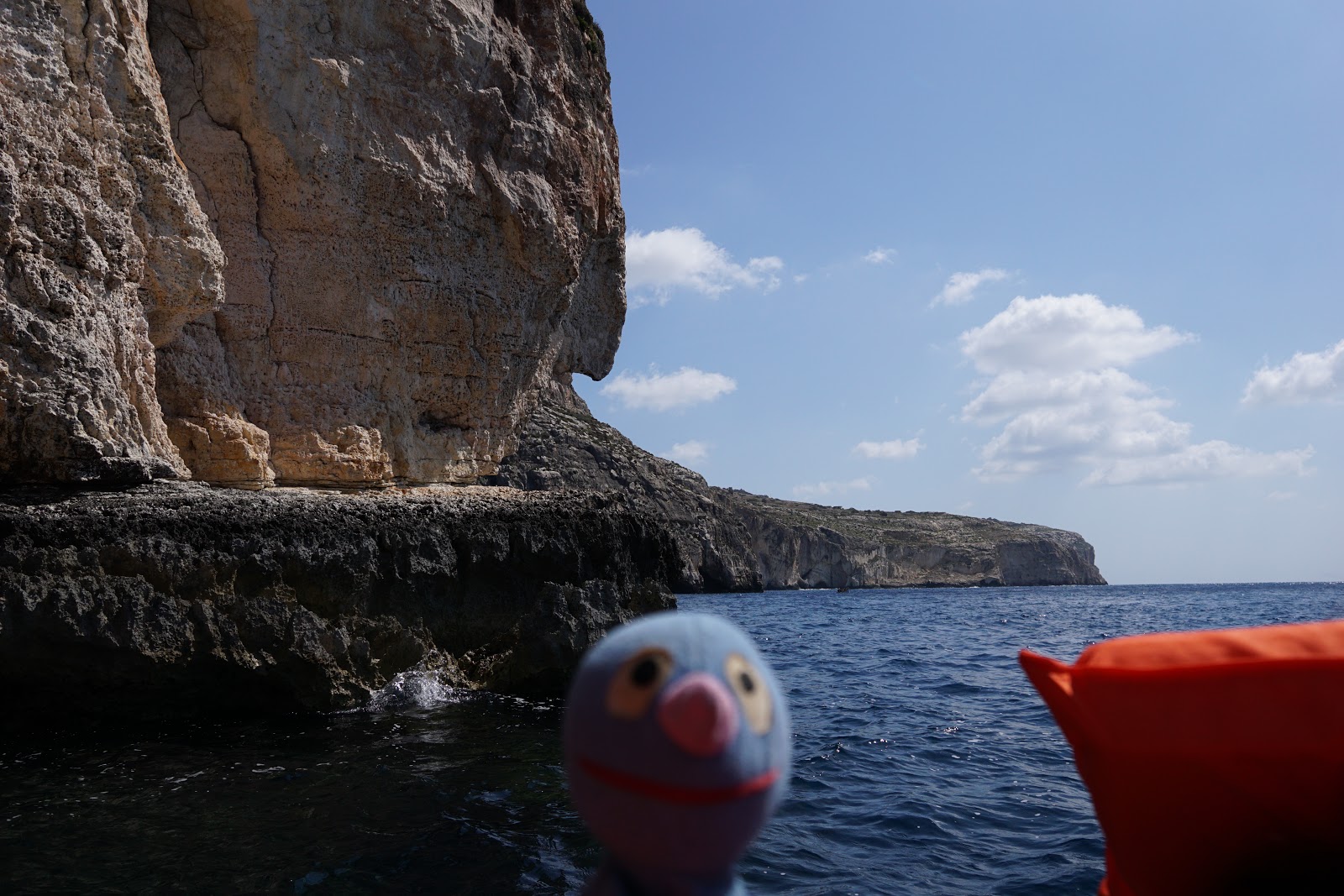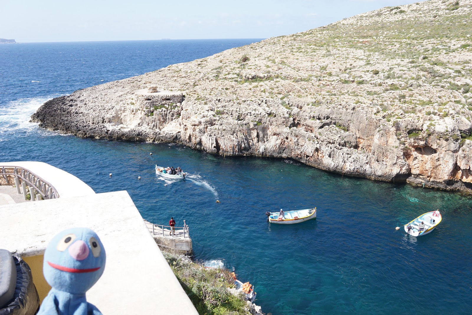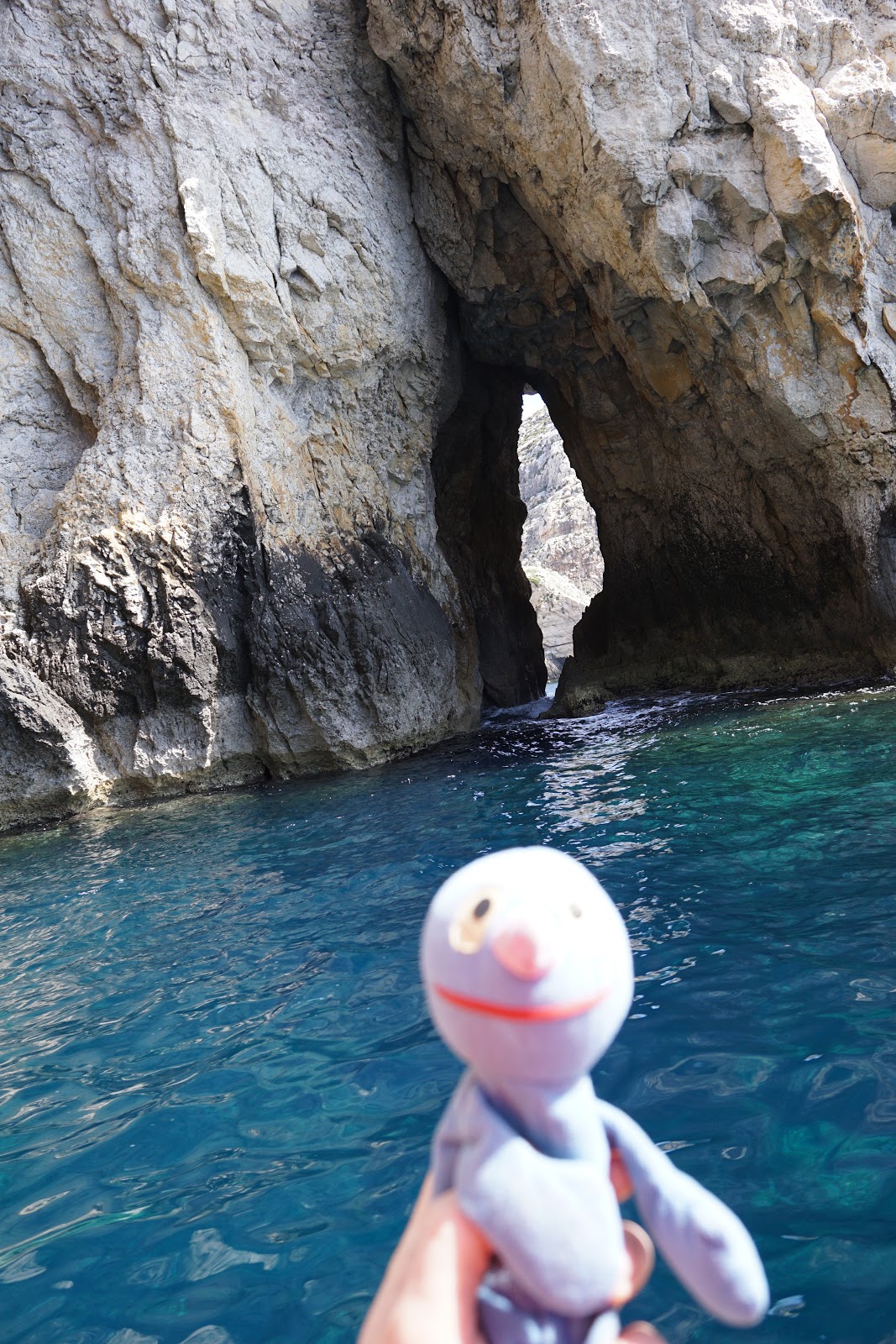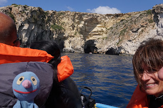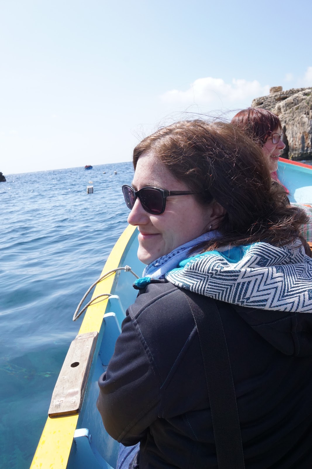 Am Ende haben wir Wied id-Zurrieq unversehrt erreicht, den Ort, von dem Boote zur Blue Grotto fahren. Vor Ort haben wir direkt eine Karte für die Bootsfahrt gekauft und sind auch direkt eingestiegen. Leider war auch die Bootsfahrt nicht gerade gemütlich, aber ich war tapfer und habe mich für Fotos zur Verfügung gestellt. Selbstverständlich musste mich der Moppel super gut festhalten. Gelohnt hat es sich jedenfalls total, auch wenn das eine oder andere Foto etwas verwackelt oder unscharf ist