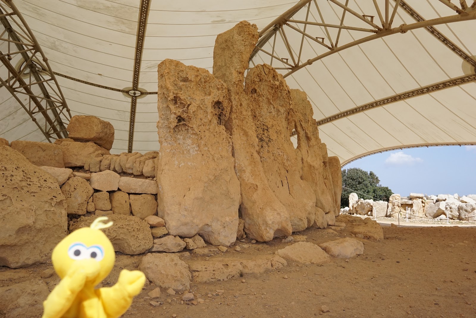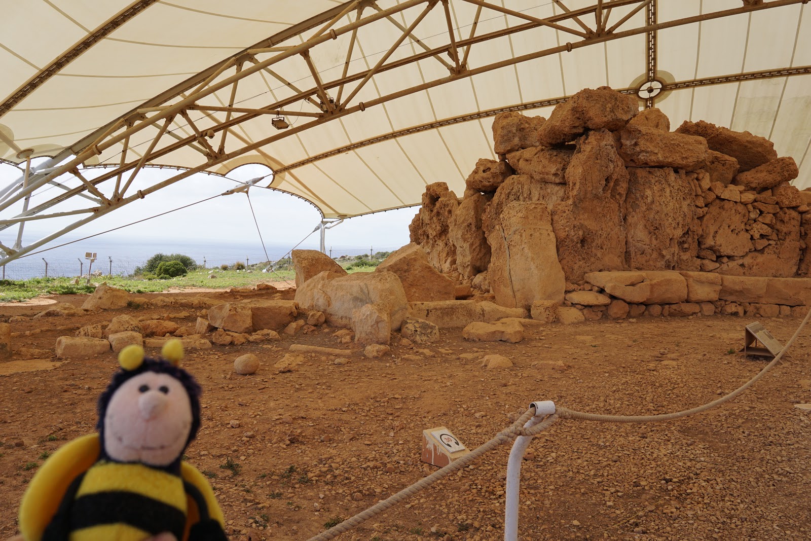 Anschließend ging es nach Hagar Qim zu den Tempelanlagen. Dort gibt es zum einen ein Museum und den Tempel Hagar Qim zu besichtigen. Hier mussten wir uns gegen eine Führung durchkämpfen, die den halben Tempel belegt hat, aber ein paar Fotos haben wir trotzdem hinbekommen.