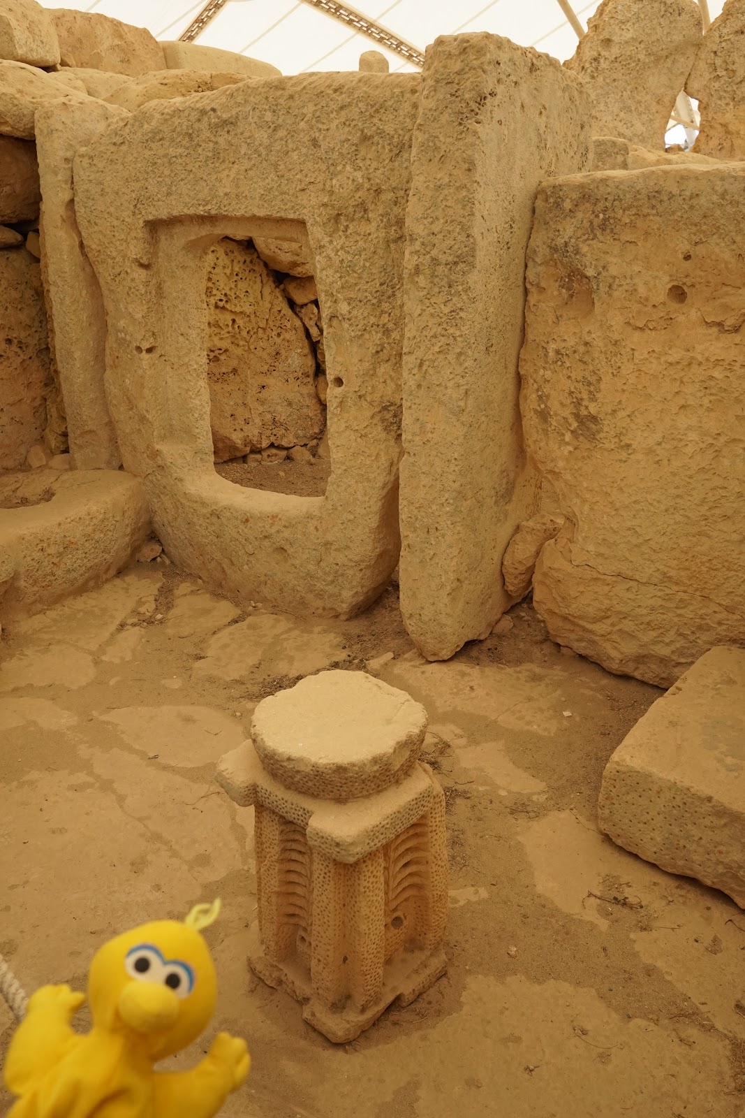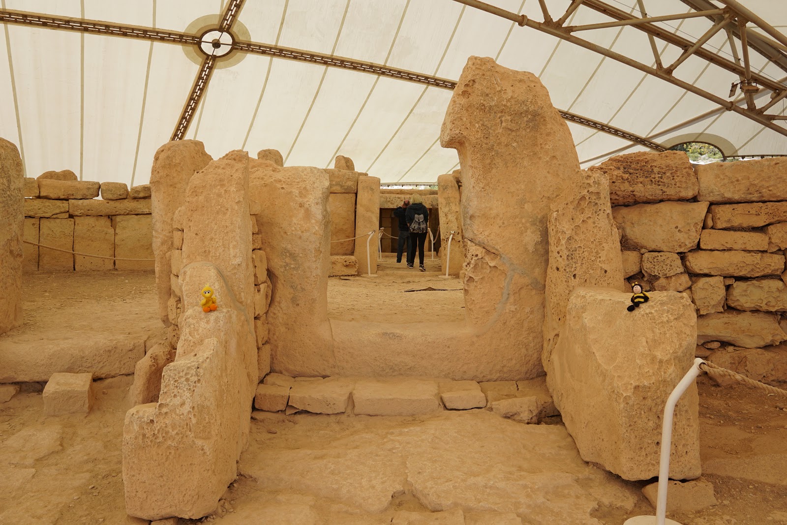 Hier haben wir recht unbehelligt fotografiert bis ein Wärter auf uns aufmerksam geworden ist und geschimpft hat. Als würde ein kleiner Plüschi-Hintern diesen uralten Steinen etwas antun…