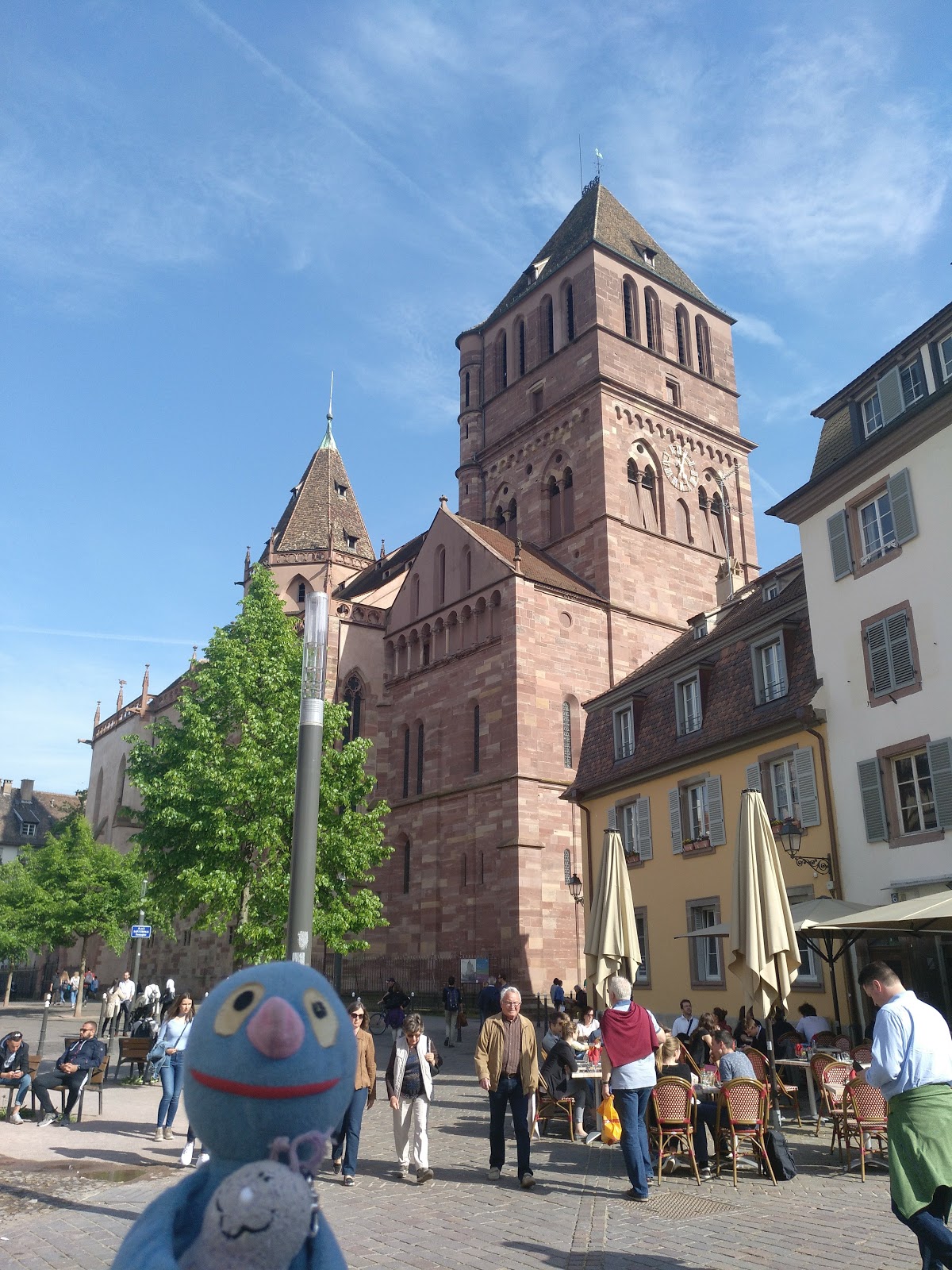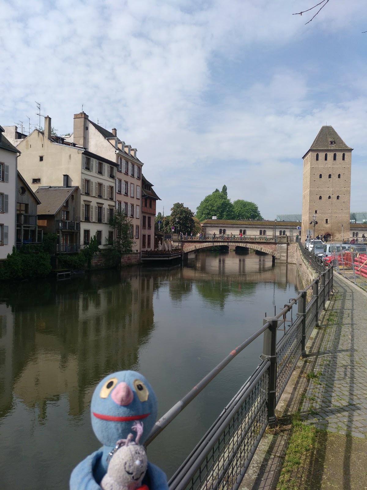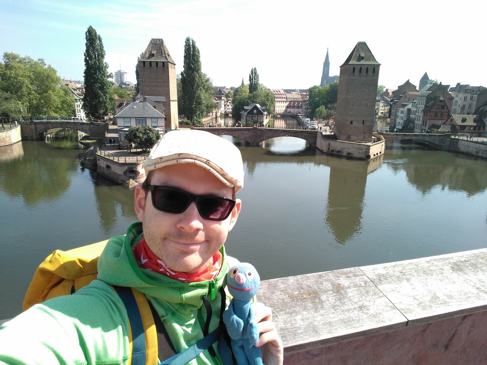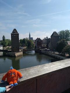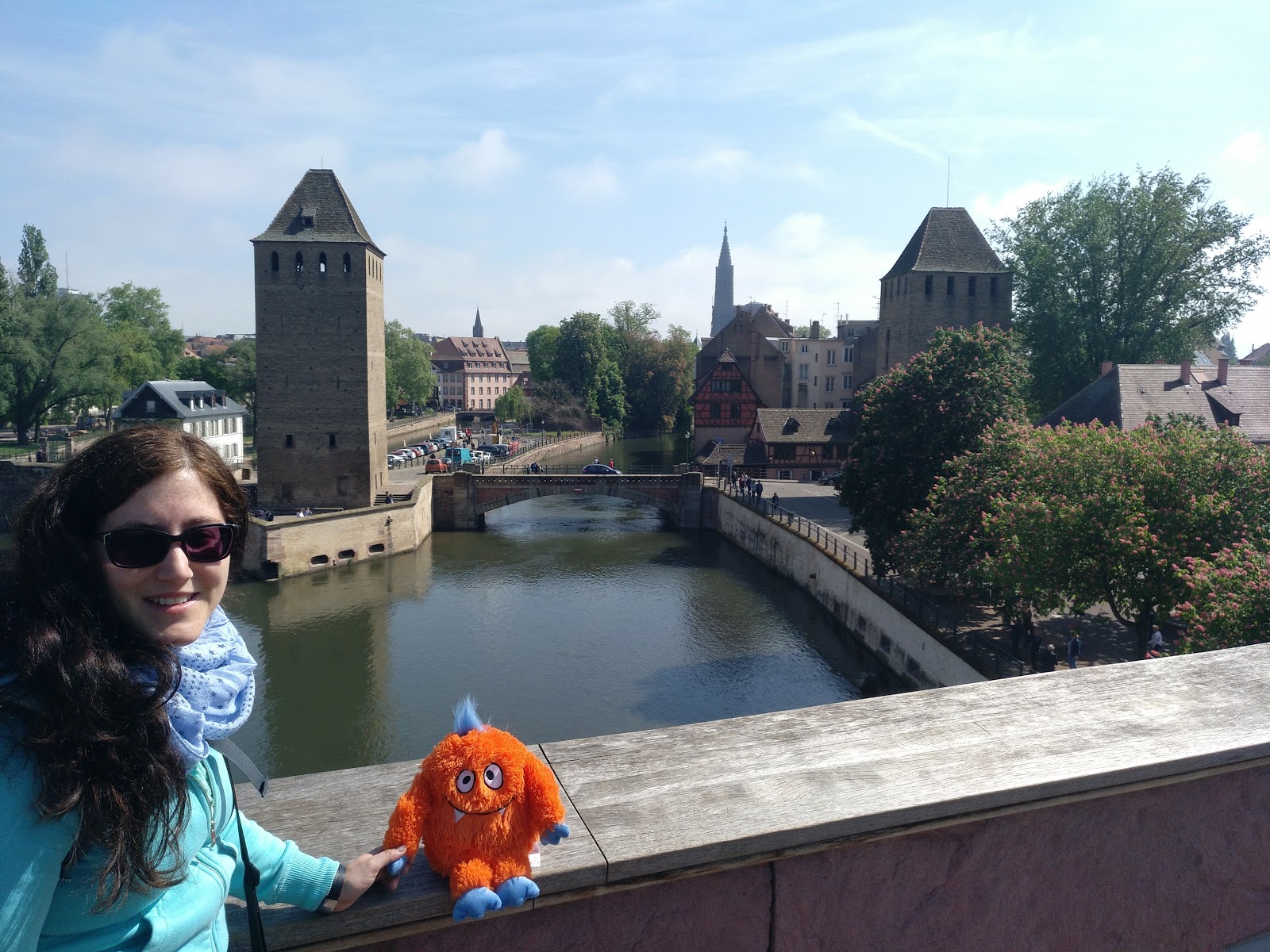 Nach einer halben Stunde Pause ging es von dort weiter, allerdings erst, nachdem der Busfahrer das Schatzi wegen ihres Rucksacks angemault hatte (dieser lag im Gepäckfach über ihrem Sitz, wie die automatische Flixbus-Durchsage am Anfang der Fahrt es erbeten hatte, aber der Fahrer wollte, dass der Rucksack unter ihrem Sitz lag, was nicht gut ging, da eine Sitzbefestigung im Weg war). Sei\’s drum. Der Rest der Fahrt nach Straßburg ging dann immerhin schneller und recht problemlos und wir waren alle happy, als wir den Bus verlassen konnten. Es war gegen 15 Uhr am Nachmittag und schönes Wetter (sonnig, aber nicht zu warm).