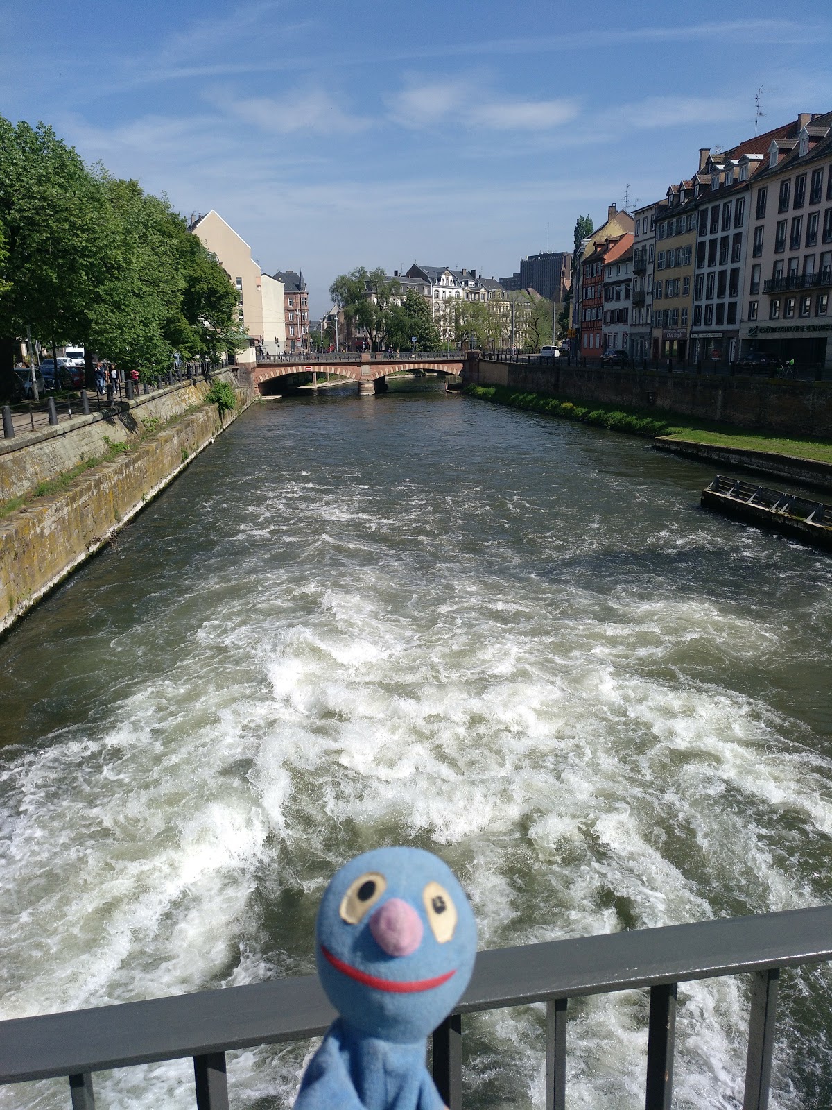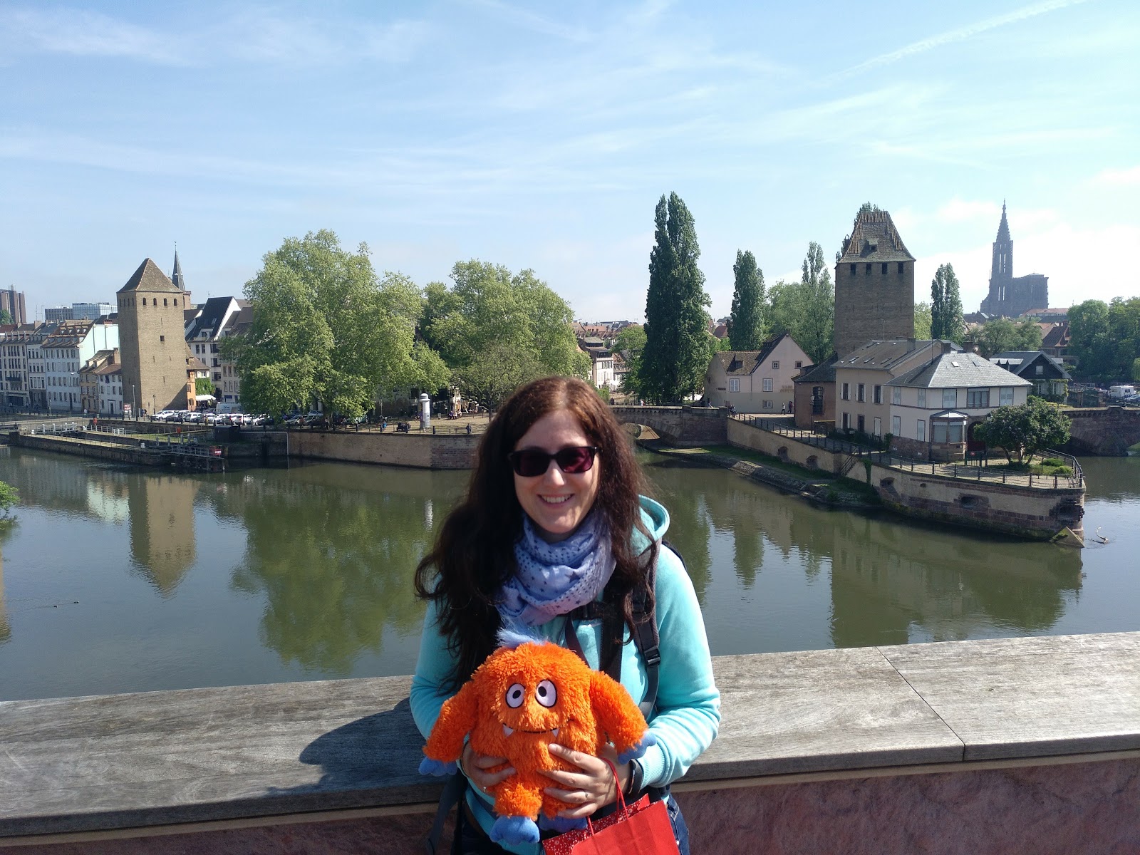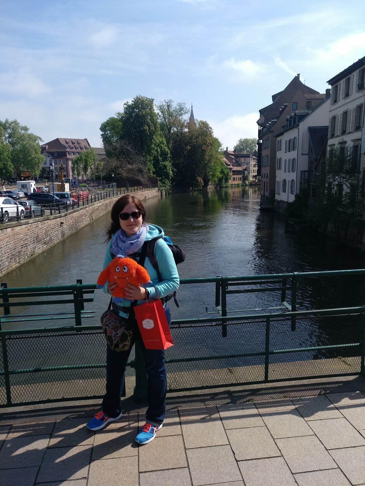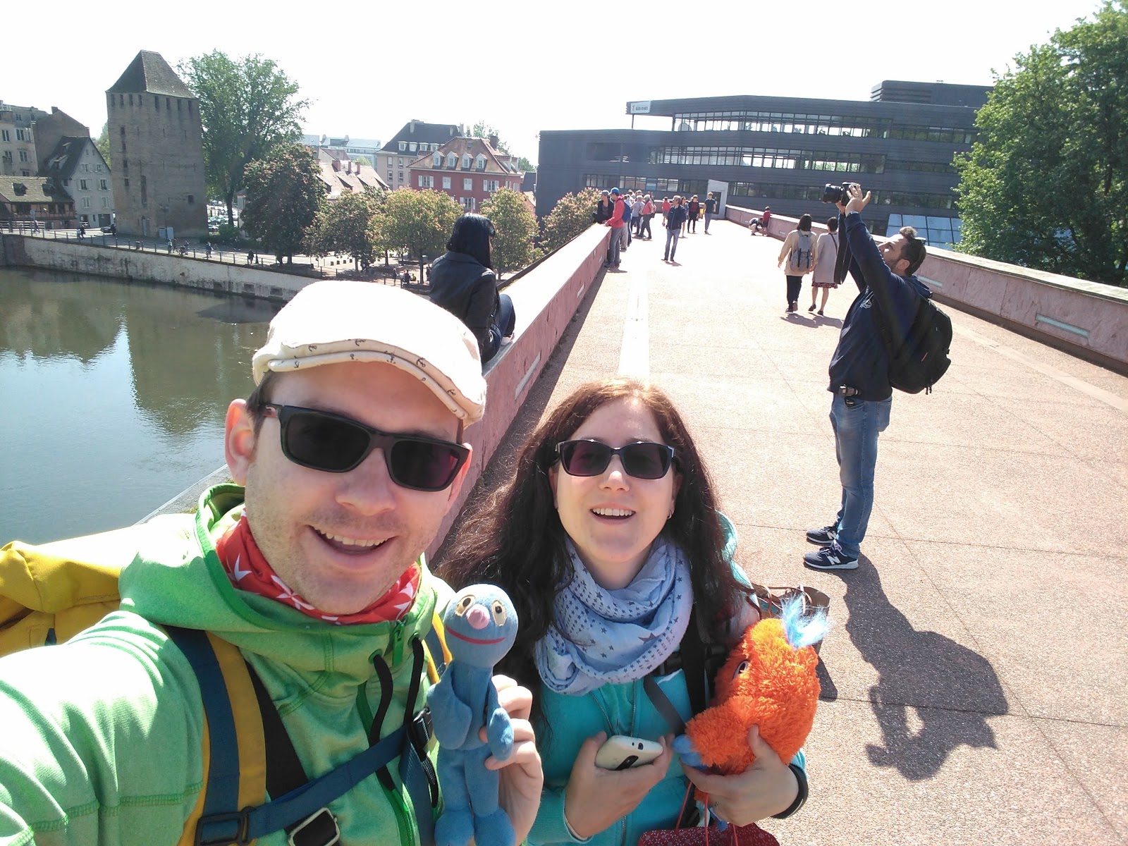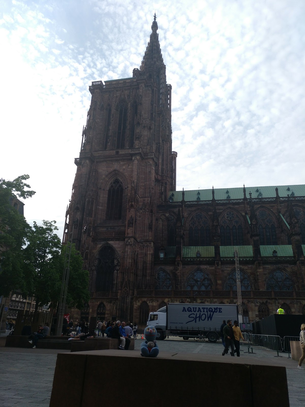 Nach einer halben Stunde Pause ging es von dort weiter, allerdings erst, nachdem der Busfahrer das Schatzi wegen ihres Rucksacks angemault hatte (dieser lag im Gepäckfach über ihrem Sitz, wie die automatische Flixbus-Durchsage am Anfang der Fahrt es erbeten hatte, aber der Fahrer wollte, dass der Rucksack unter ihrem Sitz lag, was nicht gut ging, da eine Sitzbefestigung im Weg war). Sei\’s drum. Der Rest der Fahrt nach Straßburg ging dann immerhin schneller und recht problemlos und wir waren alle happy, als wir den Bus verlassen konnten. Es war gegen 15 Uhr am Nachmittag und schönes Wetter (sonnig, aber nicht zu warm).