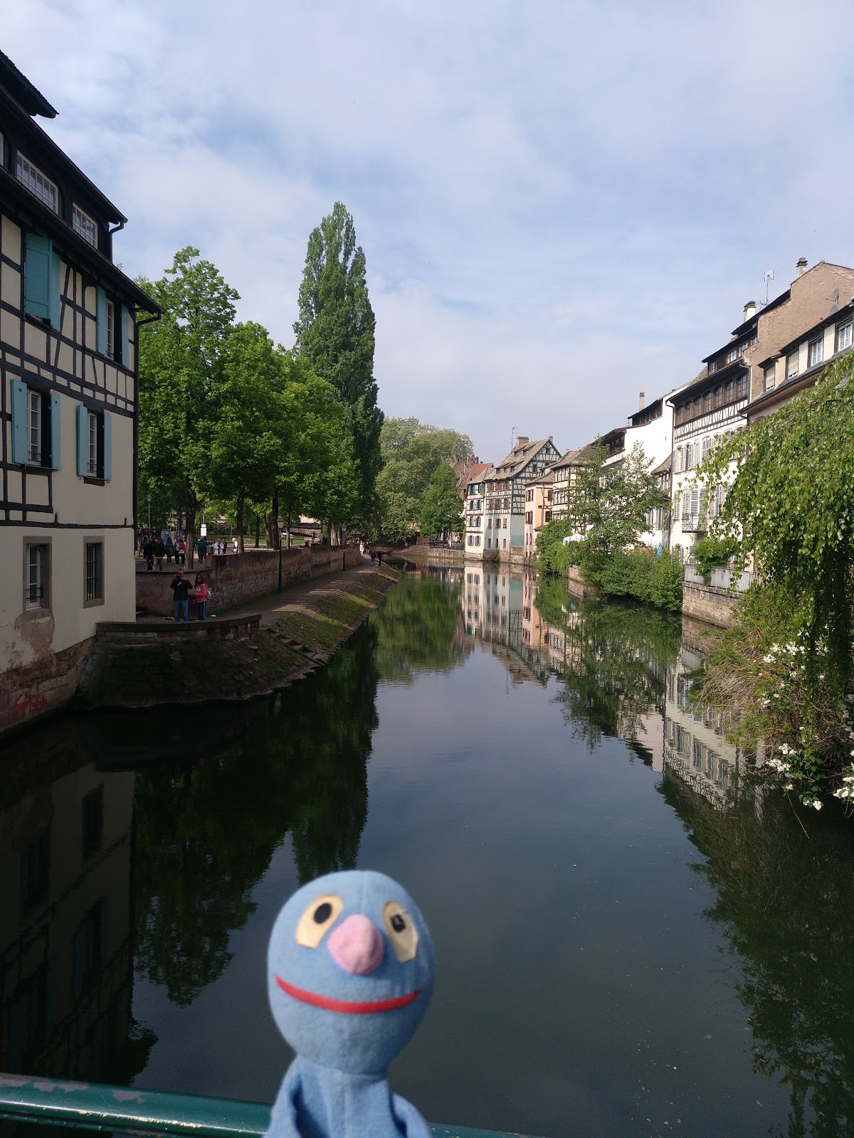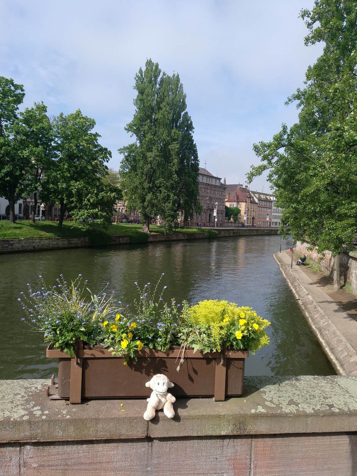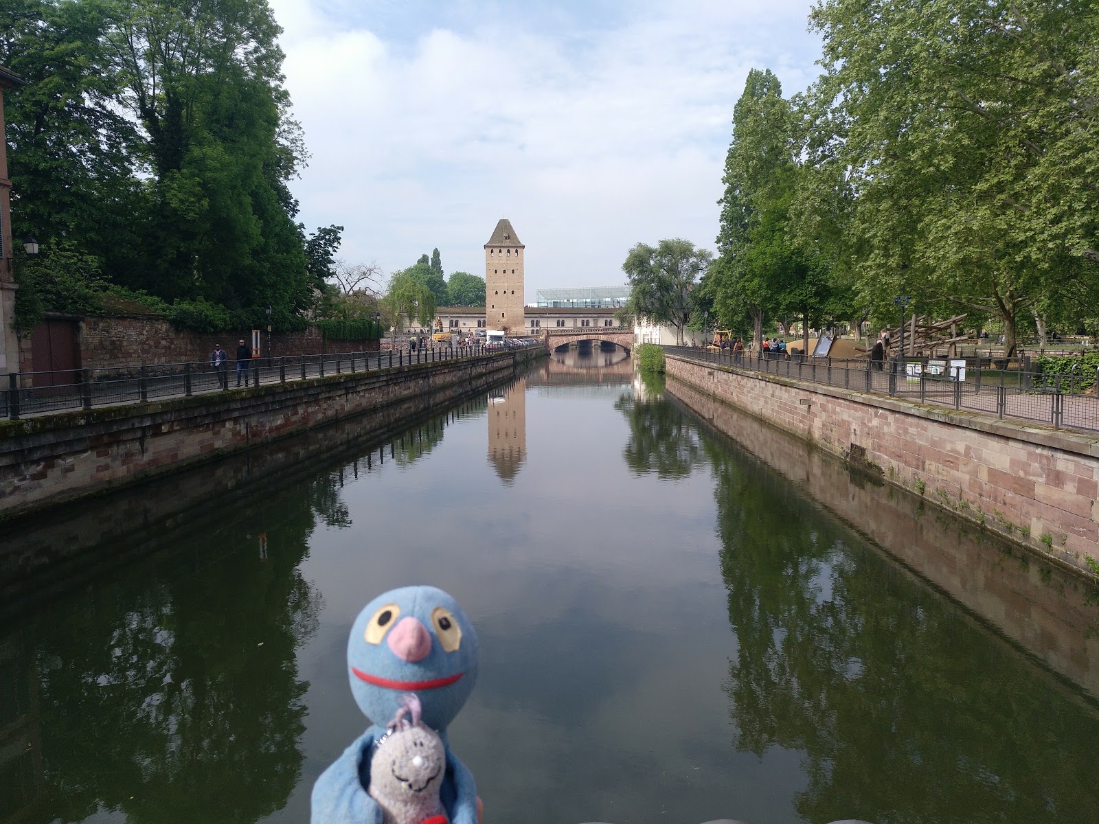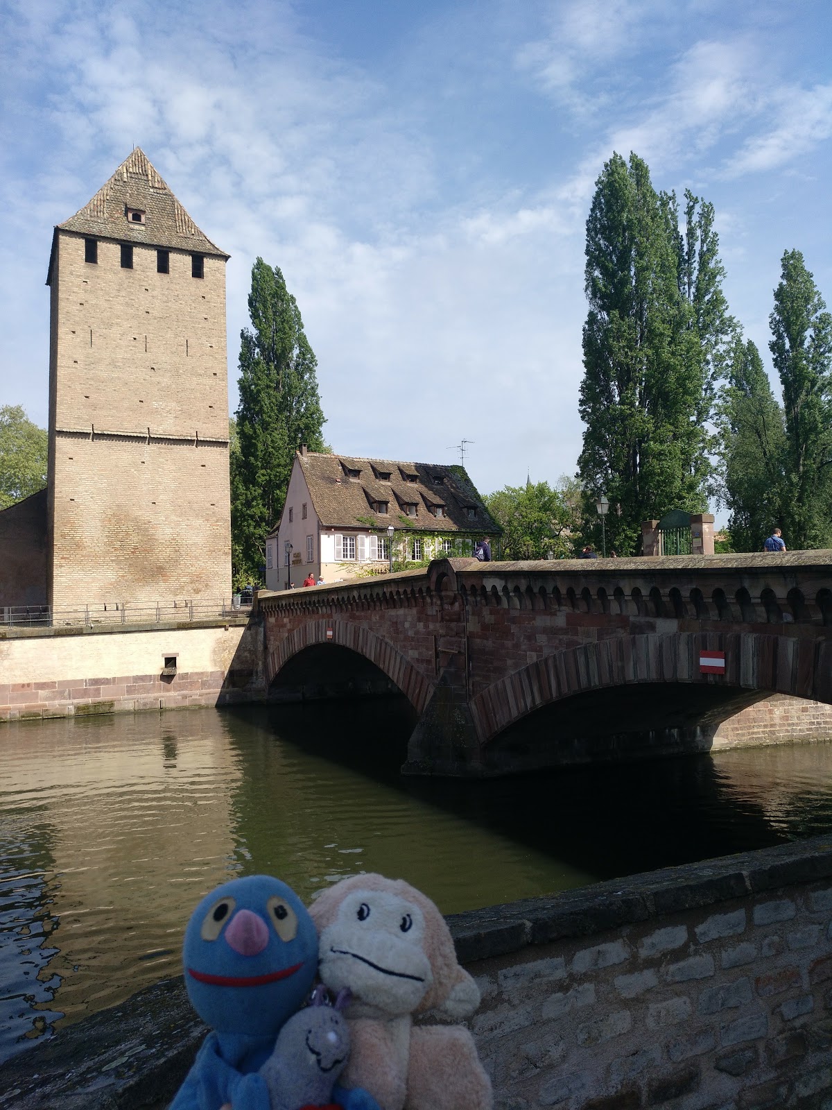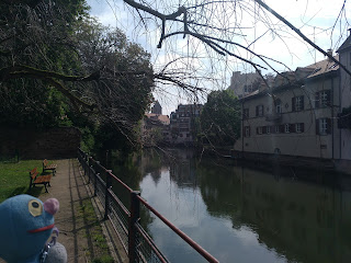 Nach einer halben Stunde Pause ging es von dort weiter, allerdings erst, nachdem der Busfahrer das Schatzi wegen ihres Rucksacks angemault hatte (dieser lag im Gepäckfach über ihrem Sitz, wie die automatische Flixbus-Durchsage am Anfang der Fahrt es erbeten hatte, aber der Fahrer wollte, dass der Rucksack unter ihrem Sitz lag, was nicht gut ging, da eine Sitzbefestigung im Weg war). Sei\’s drum. Der Rest der Fahrt nach Straßburg ging dann immerhin schneller und recht problemlos und wir waren alle happy, als wir den Bus verlassen konnten. Es war gegen 15 Uhr am Nachmittag und schönes Wetter (sonnig, aber nicht zu warm).