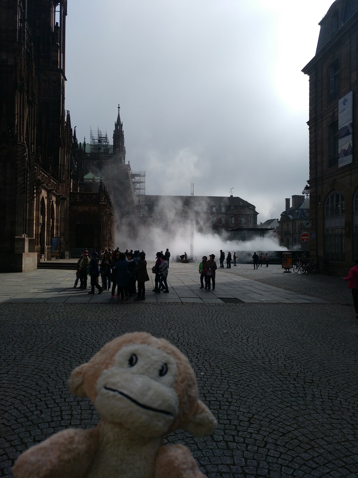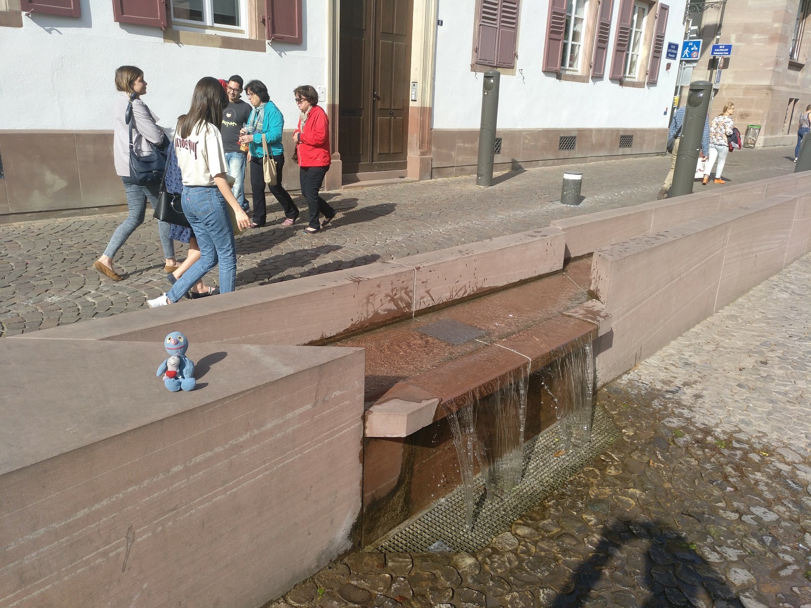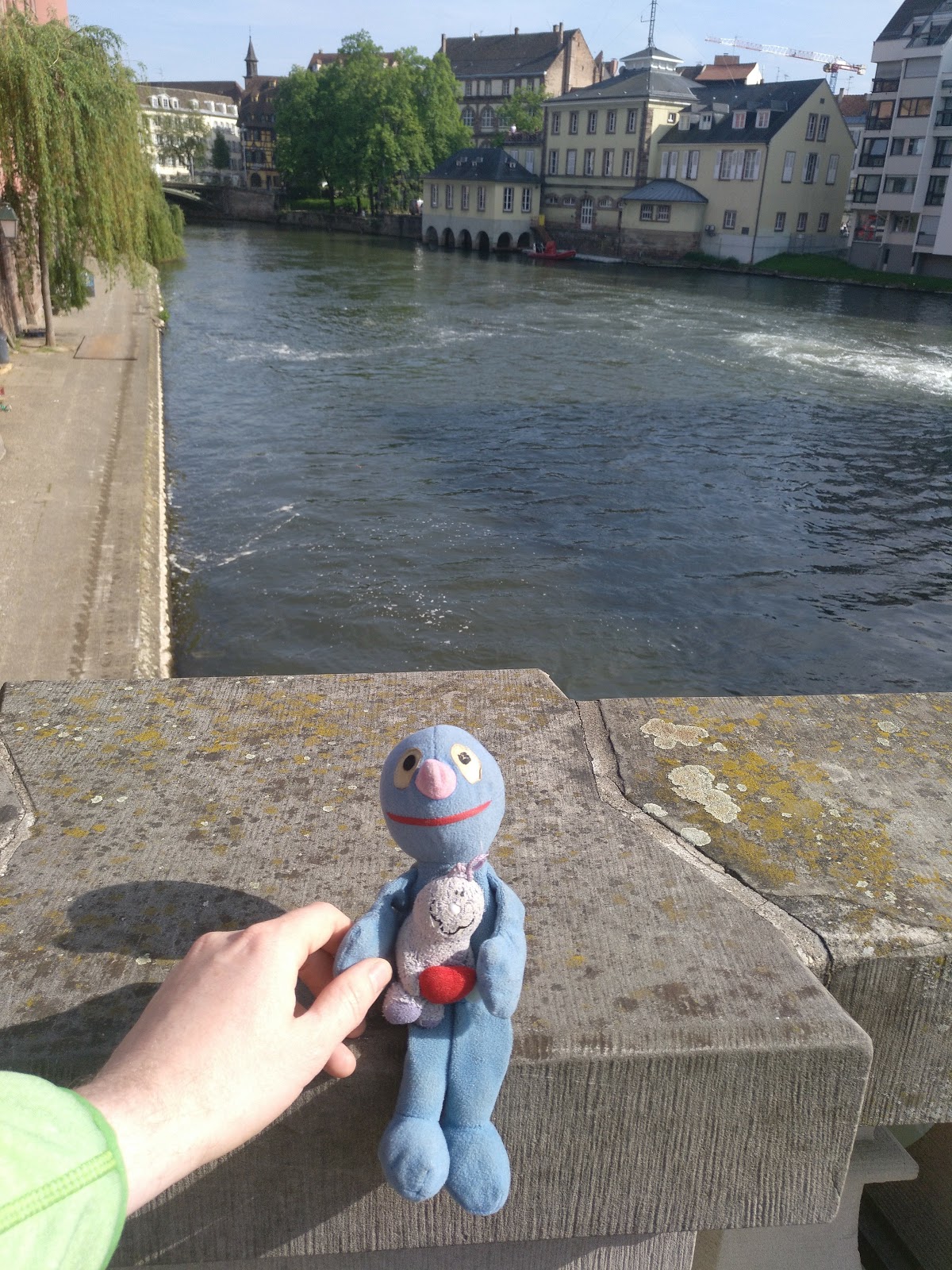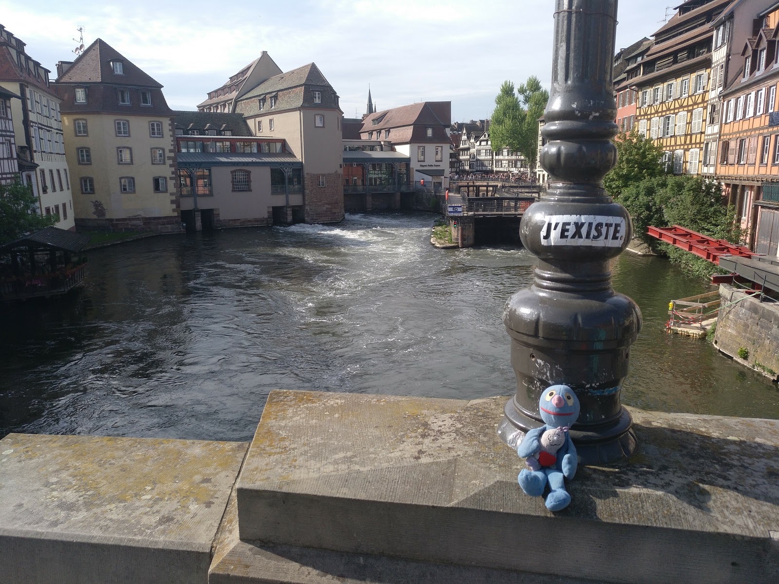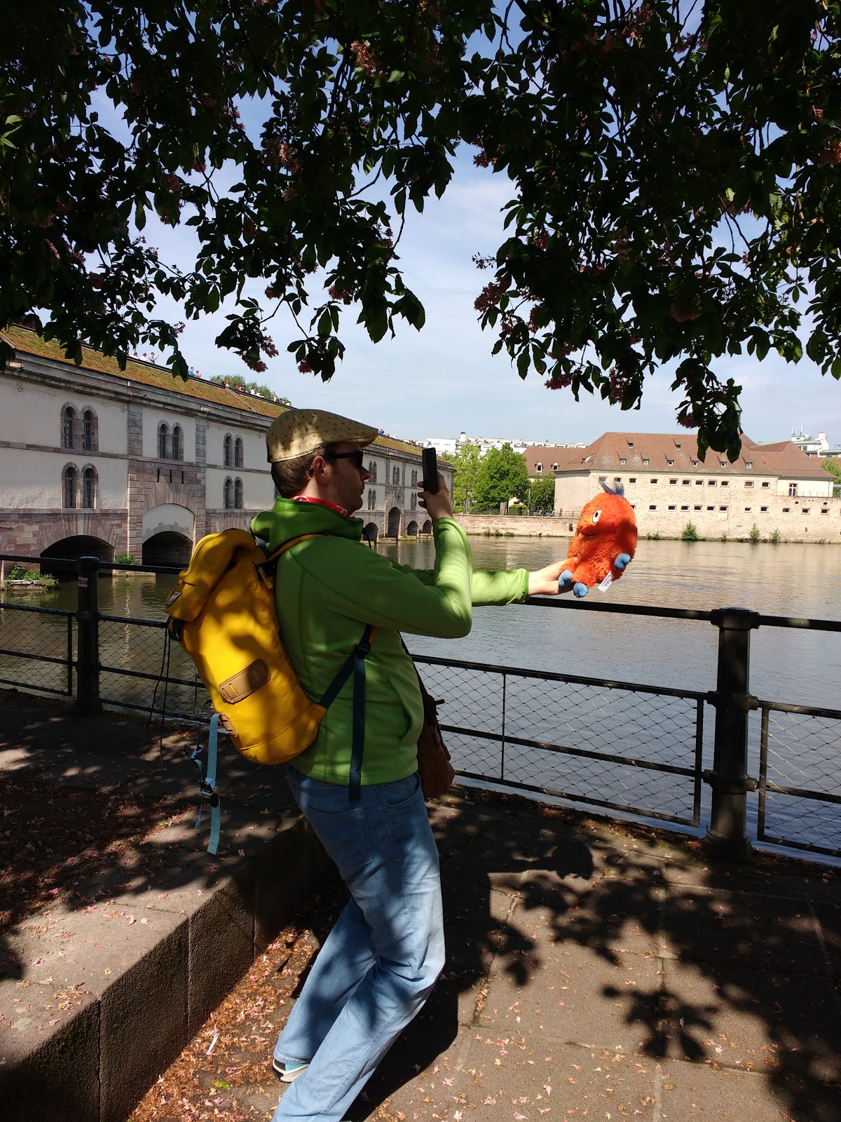 Nach einer halben Stunde Pause ging es von dort weiter, allerdings erst, nachdem der Busfahrer das Schatzi wegen ihres Rucksacks angemault hatte (dieser lag im Gepäckfach über ihrem Sitz, wie die automatische Flixbus-Durchsage am Anfang der Fahrt es erbeten hatte, aber der Fahrer wollte, dass der Rucksack unter ihrem Sitz lag, was nicht gut ging, da eine Sitzbefestigung im Weg war). Sei\’s drum. Der Rest der Fahrt nach Straßburg ging dann immerhin schneller und recht problemlos und wir waren alle happy, als wir den Bus verlassen konnten. Es war gegen 15 Uhr am Nachmittag und schönes Wetter (sonnig, aber nicht zu warm).