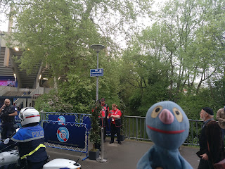 Das Stade de la Mainau fasst nicht ganz 30.000 Zuschauer, ist also doch etwas kleiner als der Borussiapark, in dem 25.000 Zuschauer mehr Platz finden. Dadurch war drumherum zwar ein bisschen los, aber irgendwie auch nicht wahnsinnig viel. Außerdem gab es direkt neben dem Stadion einen kleinen Fluss, den wir sehr hübsch fanden.