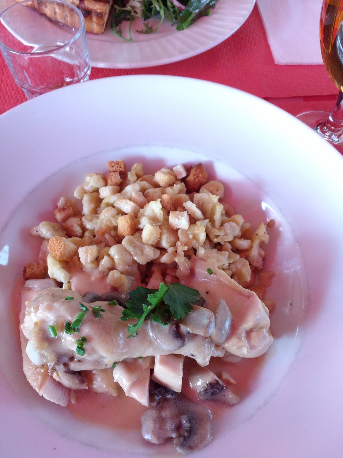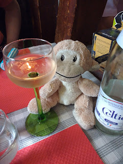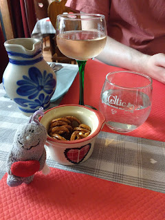 und sind schließlich in unserem Lieblingsrestaurant eingekehrt, der Chez Tante Liesel, wo wir extra einen Tisch reserviert hatten. Für Schatzi-Moppel gab es einen leckeren Wein und fantastisches Essen. Obwohl beide vom Hauptgang schon recht satt waren, kamen sie am Nachtisch nicht vorbei, der ebenfalls super gut war.