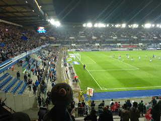 Anlass der diesjährigen Reise war das Fußballspiel Straßburg gegen Nizza. Der Moppel hatte dem Schatzi zu Weihnachten Karten für dieses Spiel geschenkt, was auf den ersten Blick komisch erscheint, aber auf den zweiten Blick eigentlich ganz logisch ist. Zum einen hat uns diese Stadt ganz hervorragend gefallen und ein weiterer Trip hierher schien sehr reizvoll. Außerdem ist Lucien Favre, unser ehemaliger Trainer, den das Schatzi ganz toll fand, inzwischen Trainer von Nizza. Und zum Schluss muss man sagen, dass wir erst letzten Herbst in Arnheim festgestellt haben, wie interessant es ist, wenn man im Ausland als neutraler Fan im Stadion ist. Man wird nicht bepöbelt oder wie ein gemeingefährlicher Krimineller behandelt, sondern kann einfach Spaß am Spiel haben. Ihr seht, es macht Sinn.