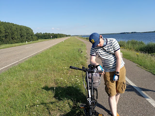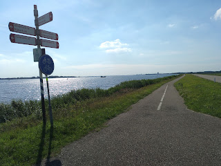 Der zweite Teil der Strecke zog sich irgendwie. Zunächst überquerten wir die Stichtse Brug, die zwischen Gooimeer und Emmeer verläuft, um dann in einem Bogen zum Wasser zurückfahren. Ab hier mussten Schatzi-Moppel einige Kilometer gegen den Gegenwind anstrampeln. Es war zwar eine wirklich hübsche Strecke, um langsam vor sich hin zu radeln, aber man merkte schon, dass echt die Luft raus war.