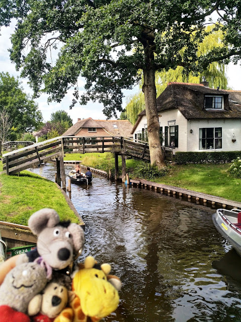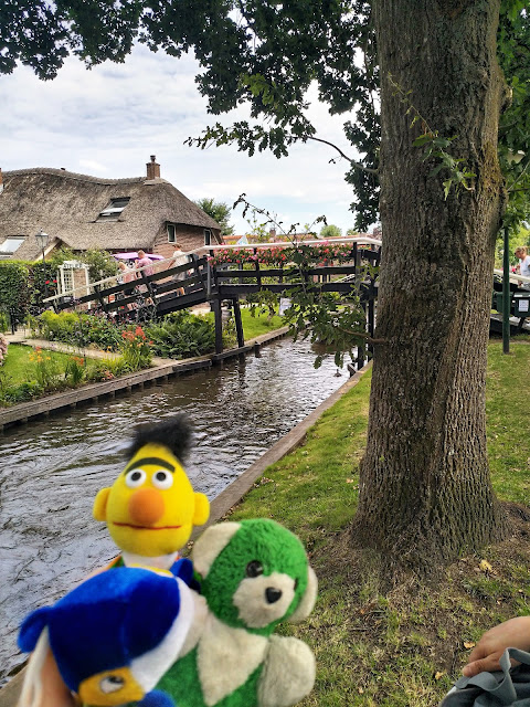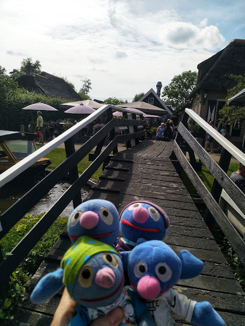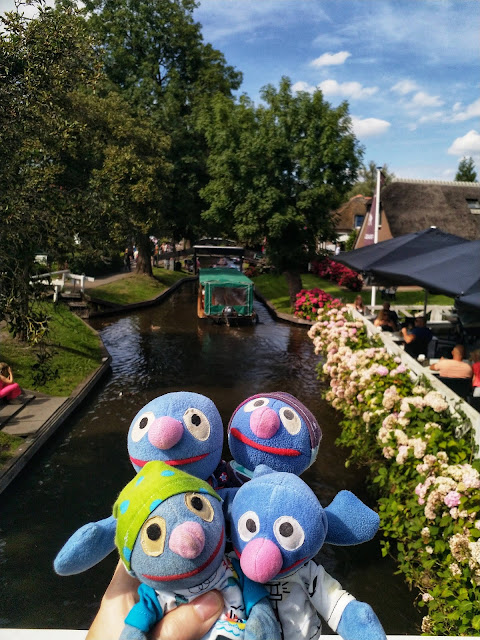 Nach einer ganzen Weile Radfahrt sind wir in Giethoorn angekommen. Giethoorn ist angeblich das \“Venedig der Niederlande\“, wir waren also recht gespannt. Zuerst haben Schatzi-Moppel die Falträder geparkt, dann sind wir zu Fuß losgezogen, um den Ort zu erkunden. Leider war tatsächlich einiges los und viele Menschen unterwegs. Auf den schmalen Wegen und insbesondere an den Brücken waren überall Hinweisschilder, dass man den Abstand von 1,5 m einhalten sollte, aber manchmal waren die Wege gar nicht so breit und nicht immer konnte man für ein Foto stehenbleiben. Wir haben uns trotzdem bemüht und einige schöne Fotos gemacht.