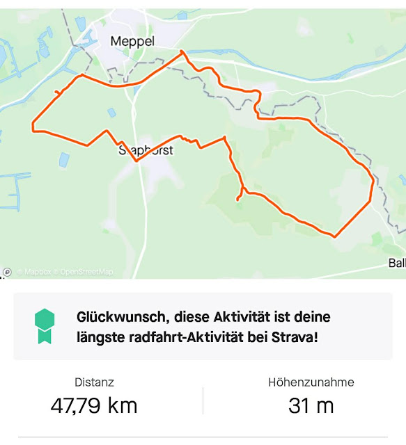 Wir sind zwar glücklicherweise nicht nass geworden, aber Ende war es ganz schön frisch und windig. Irgendwann hatten wir Staphorst erreicht und Schatzi-Moppel ächzten inzwischen ganz schön, aber einige Kilometer waren es dann doch noch bis nach Hause. Am Ende hatten wir fast 48 km geschafft und waren auch selbst ziemlich geschafft.