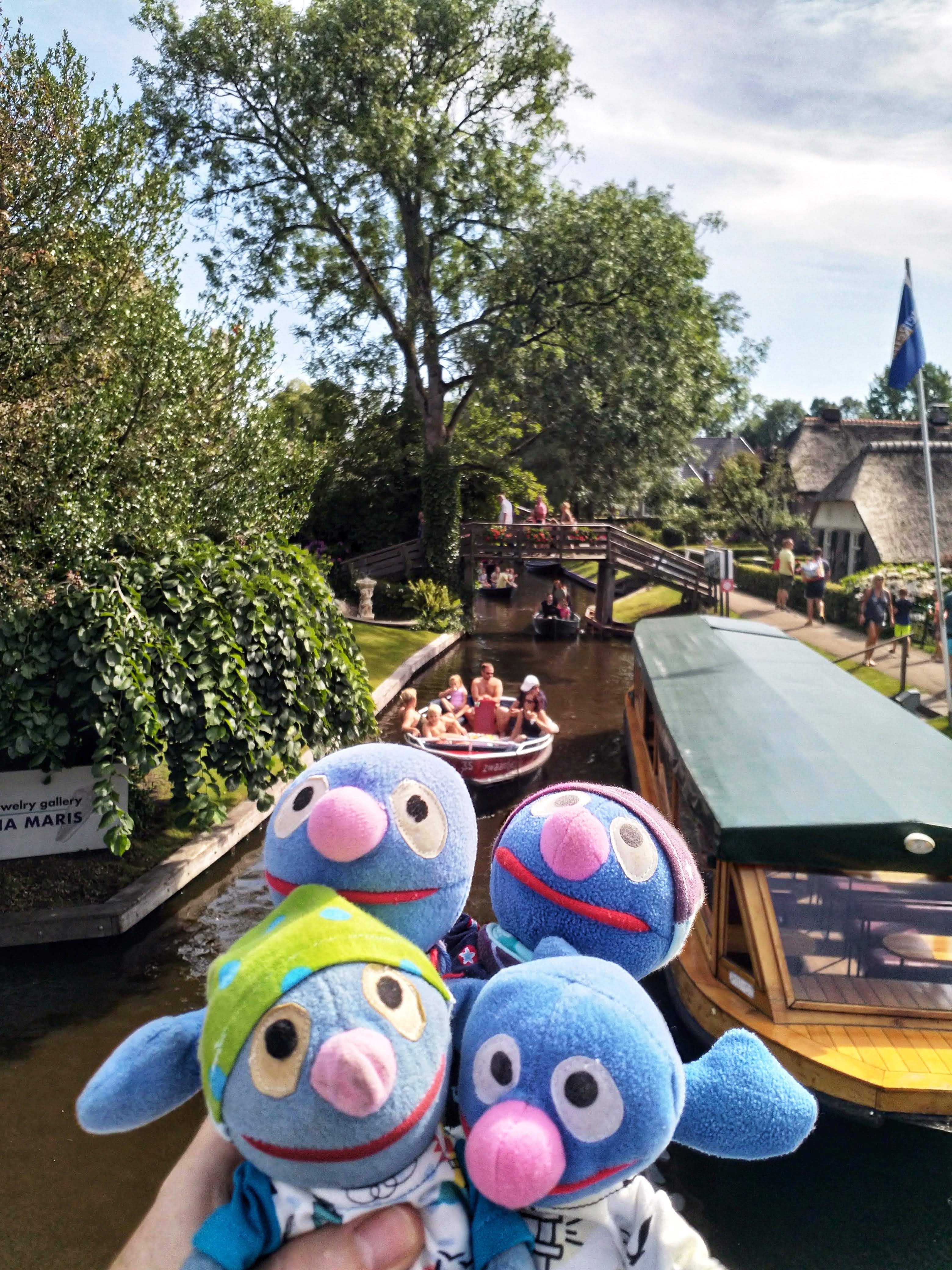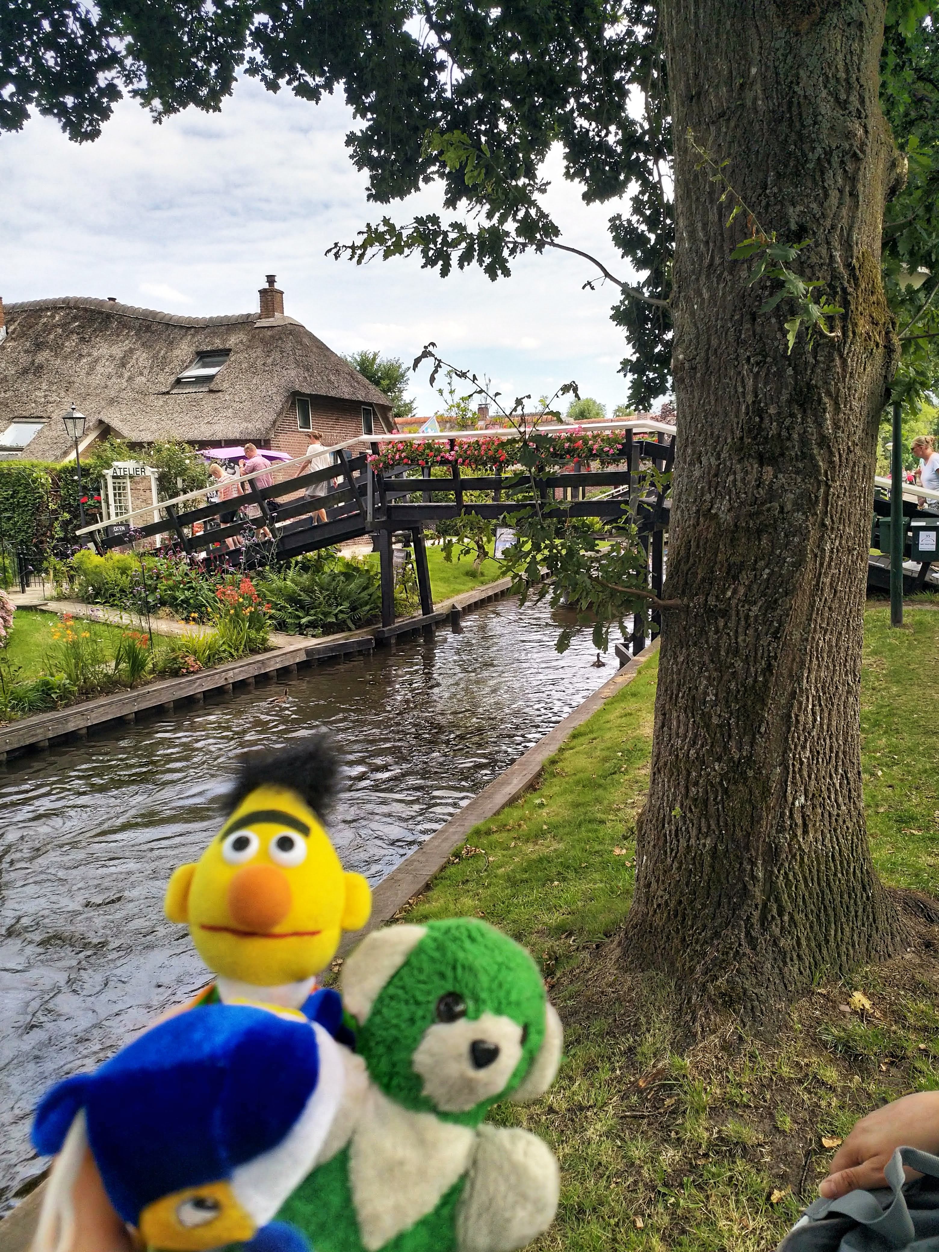 Nach einer ganzen Weile Radfahrt sind wir in Giethoorn angekommen. Giethoorn ist angeblich das \“Venedig der Niederlande\“, wir waren also recht gespannt. Zuerst haben Schatzi-Moppel die Falträder geparkt, dann sind wir zu Fuß losgezogen, um den Ort zu erkunden. Leider war tatsächlich einiges los und viele Menschen unterwegs. Auf den schmalen Wegen und insbesondere an den Brücken waren überall Hinweisschilder, dass man den Abstand von 1,5 m einhalten sollte, aber manchmal waren die Wege gar nicht so breit und nicht immer konnte man für ein Foto stehenbleiben. Wir haben uns trotzdem bemüht und einige schöne Fotos gemacht.