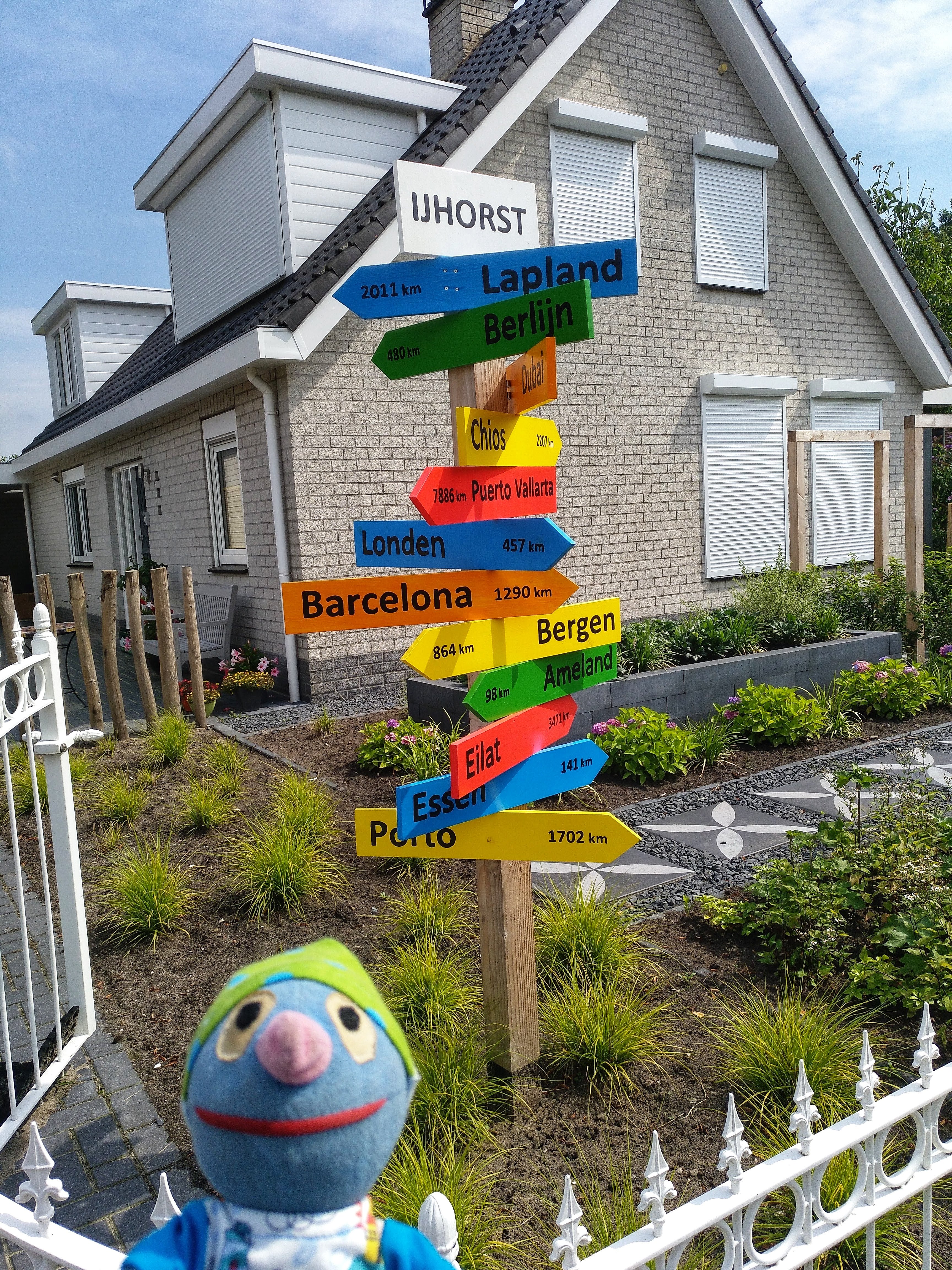 Auf der Weiterfahrt gab es in IJhorst einen lustigen Wegweiser, auf dem man sehen konnte, wie weit verschiedene Orte weg ist. Bis nach Berlin waren es z.B. 480 km.