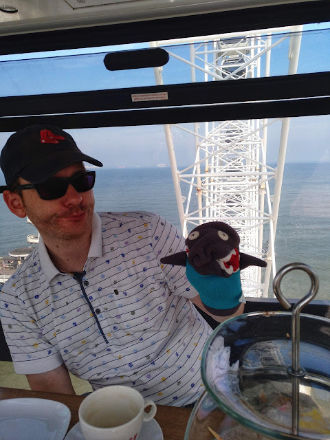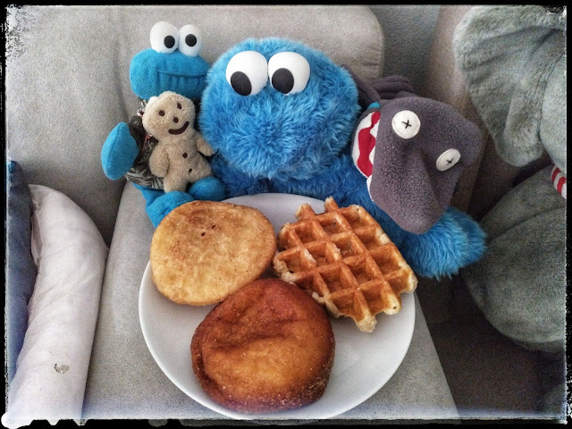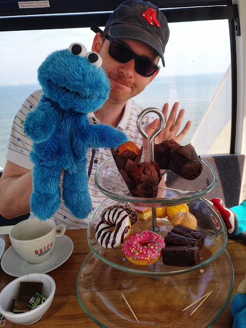 Nach etwa einer Viertelstunde wurde uns Tee und eine Etagere mit herzhaften und süßen Snacks hereingereicht und nun kamen endlich die Krümelmonster heraus und halfen fleißig mit, alles aufzumampfen.