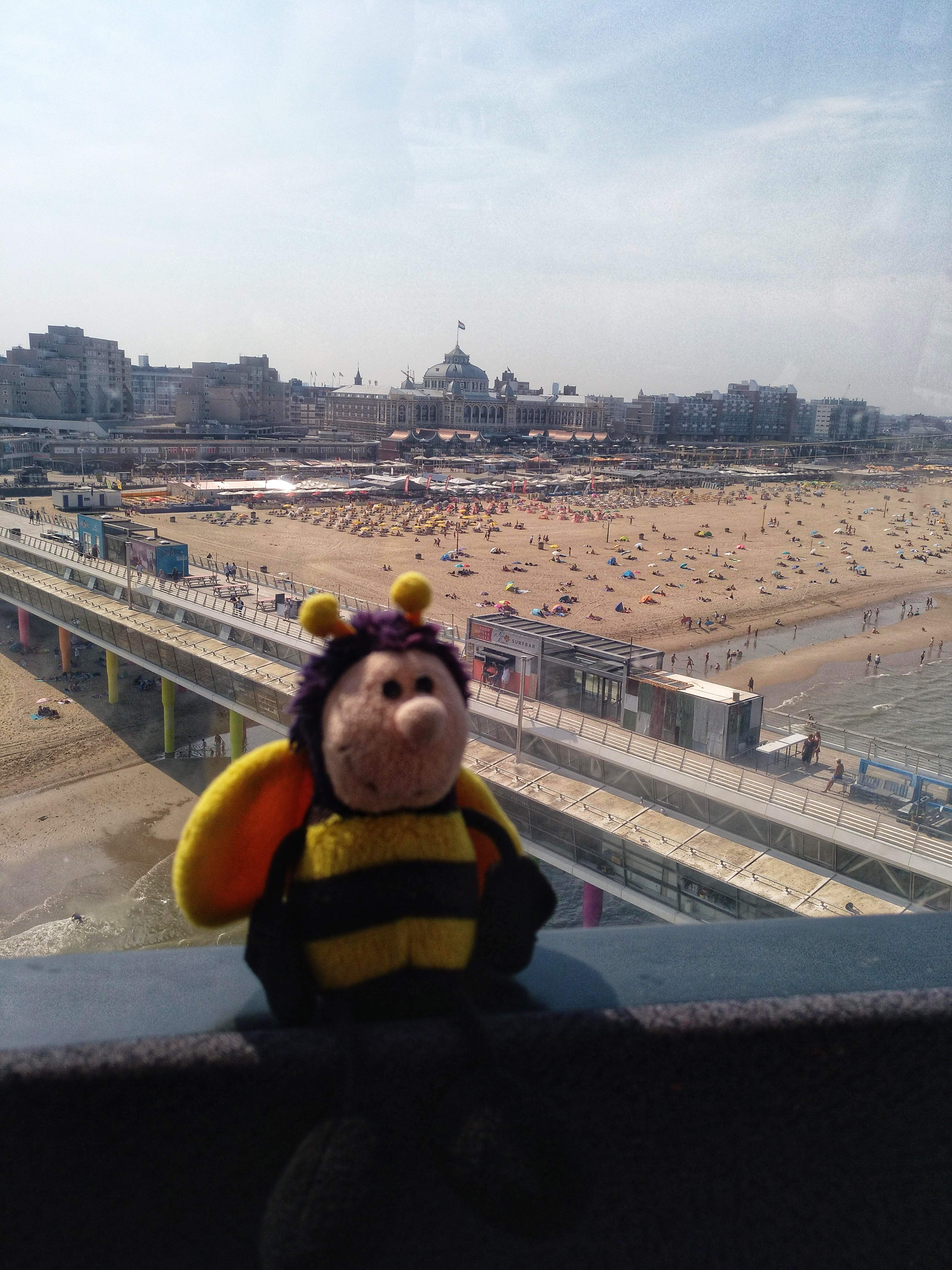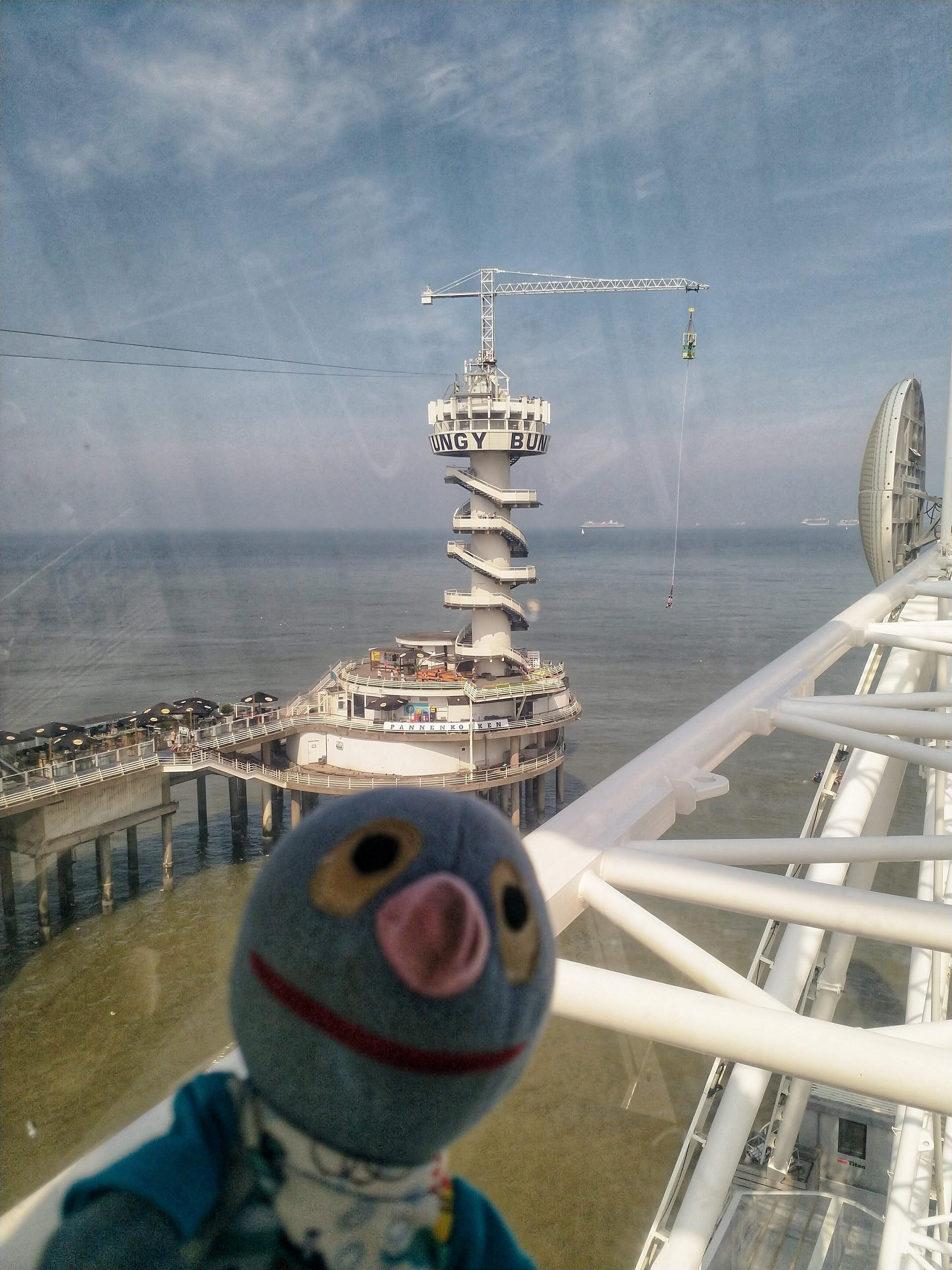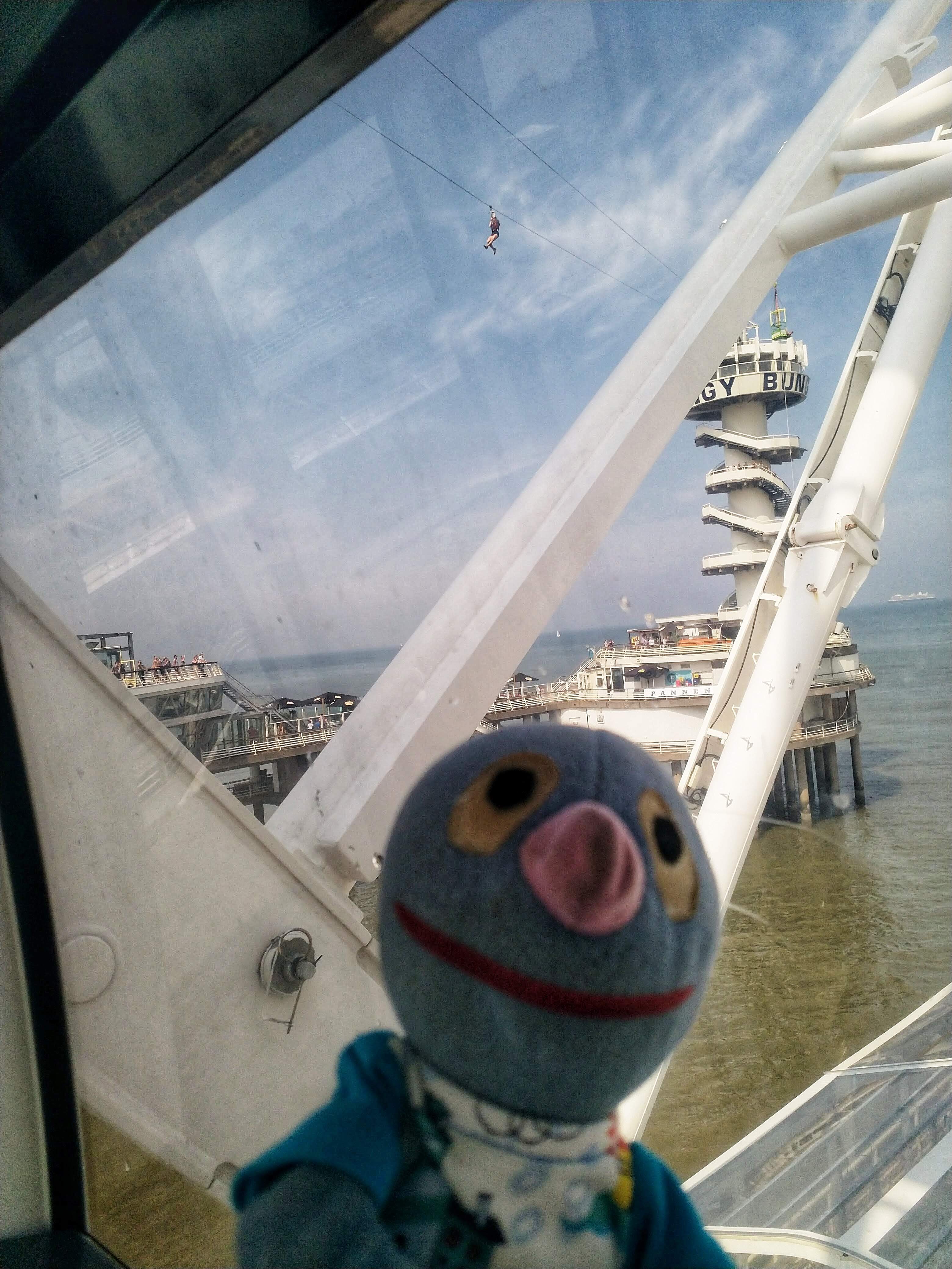 Nachdem alles aufgegessen war, konnten wir noch ziemlich lange weiter fahren und die Aussicht genießen. Es gab nicht nur einen schönen Blick auf Scheveningen und den Strand, sondern auch einige mutige Bungee Jumper und Menschen, die mit der Seilrutsche gefahren sind, zu beobachten.