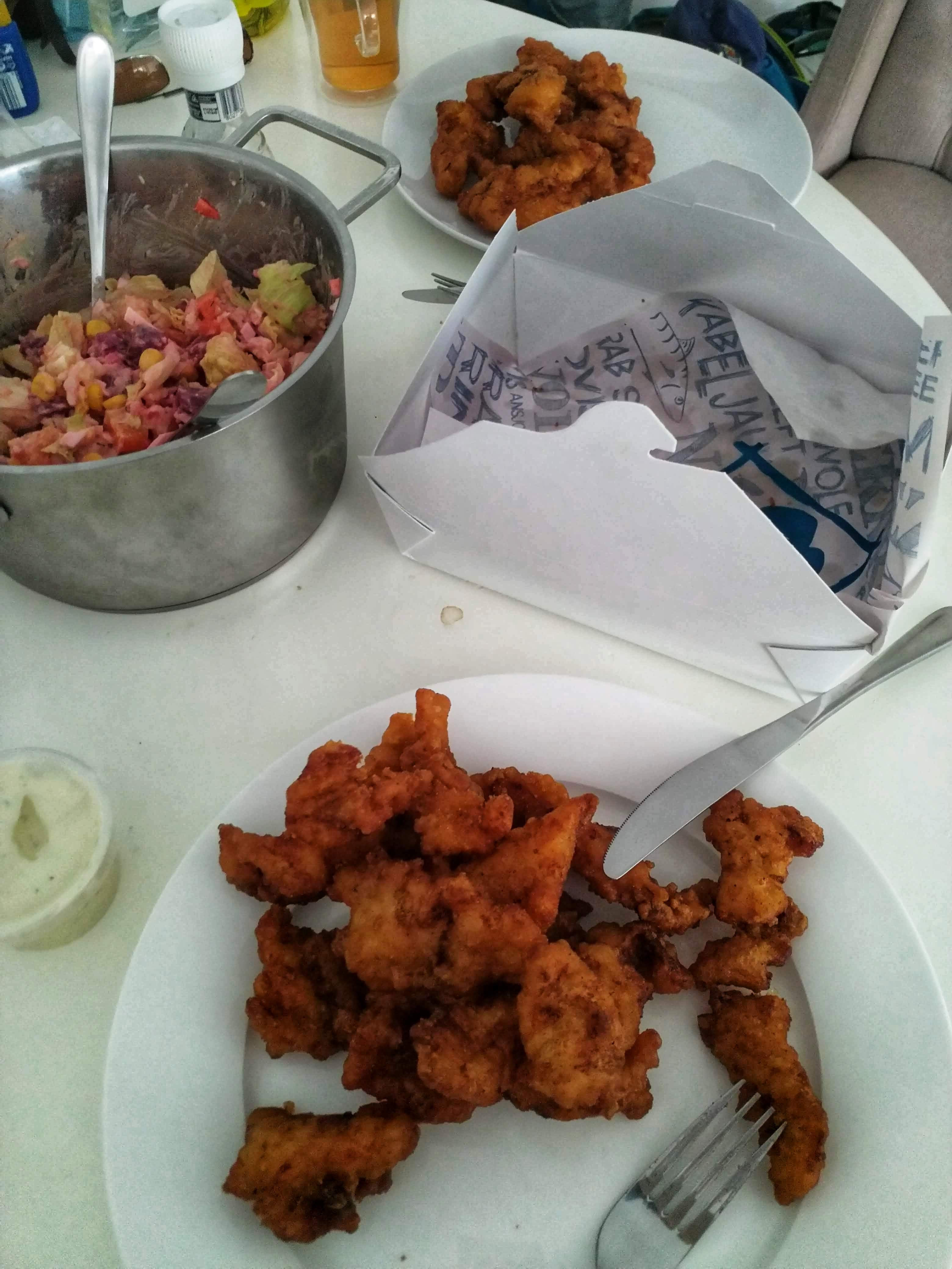 Schließlich wurden noch Getränke für die Fahrt morgen, was Süßes für die Krümelmonster und Kibbeling von der Fischbude fürs Mittagessen gekauft.