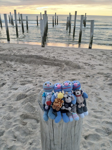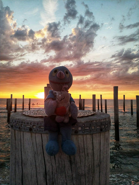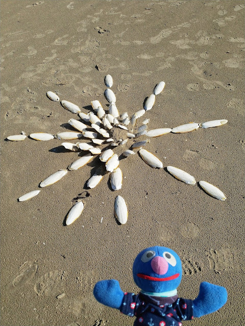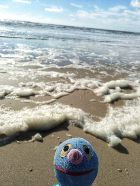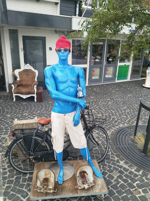 Anschließend gingen wir noch kurz zum Supermarkt, wo ich unterwegs diesen lustigen blauen Mann getroffen haben: