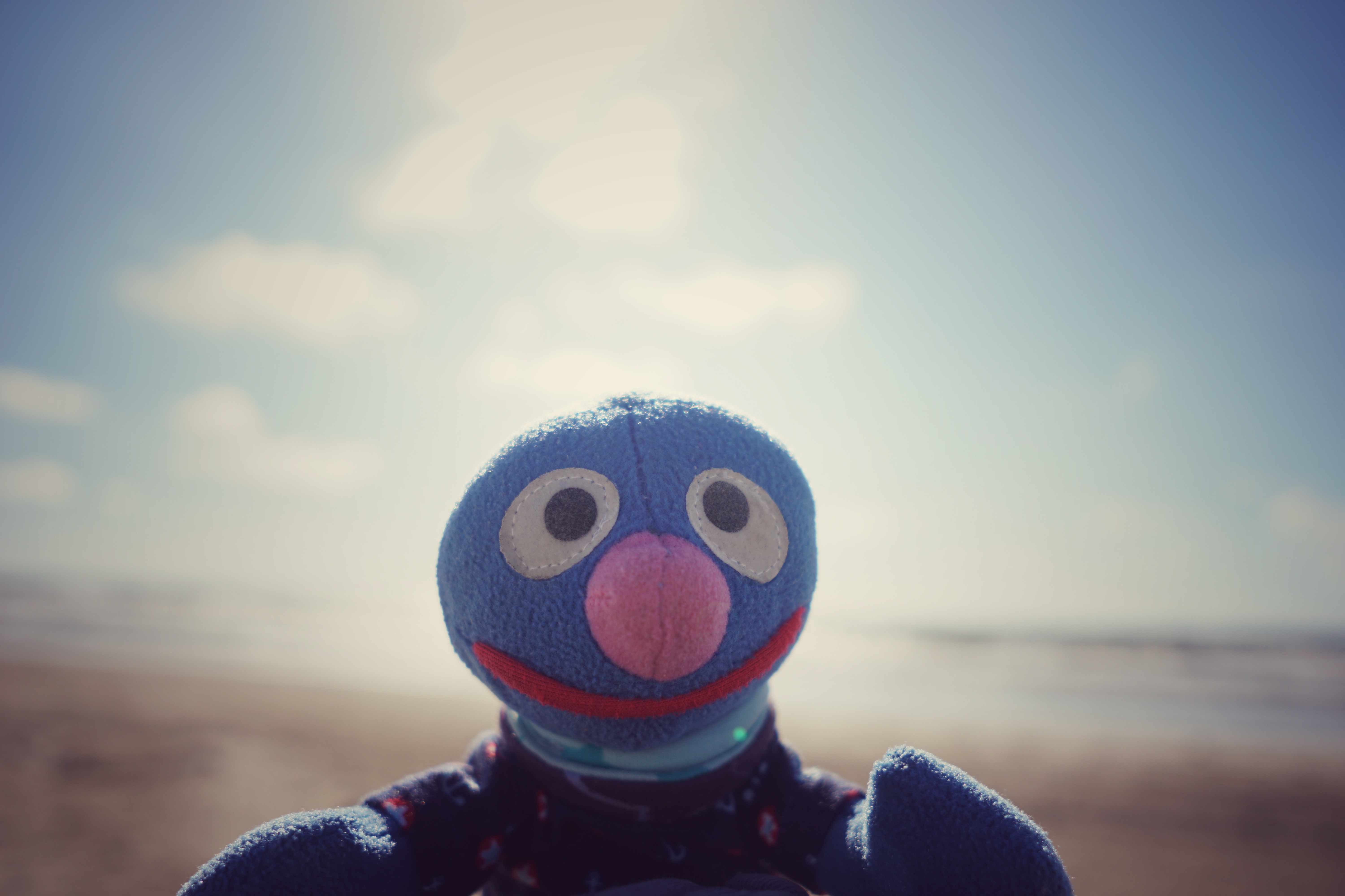 Anschließend gingen wir noch kurz zum Supermarkt, wo ich unterwegs diesen lustigen blauen Mann getroffen haben: