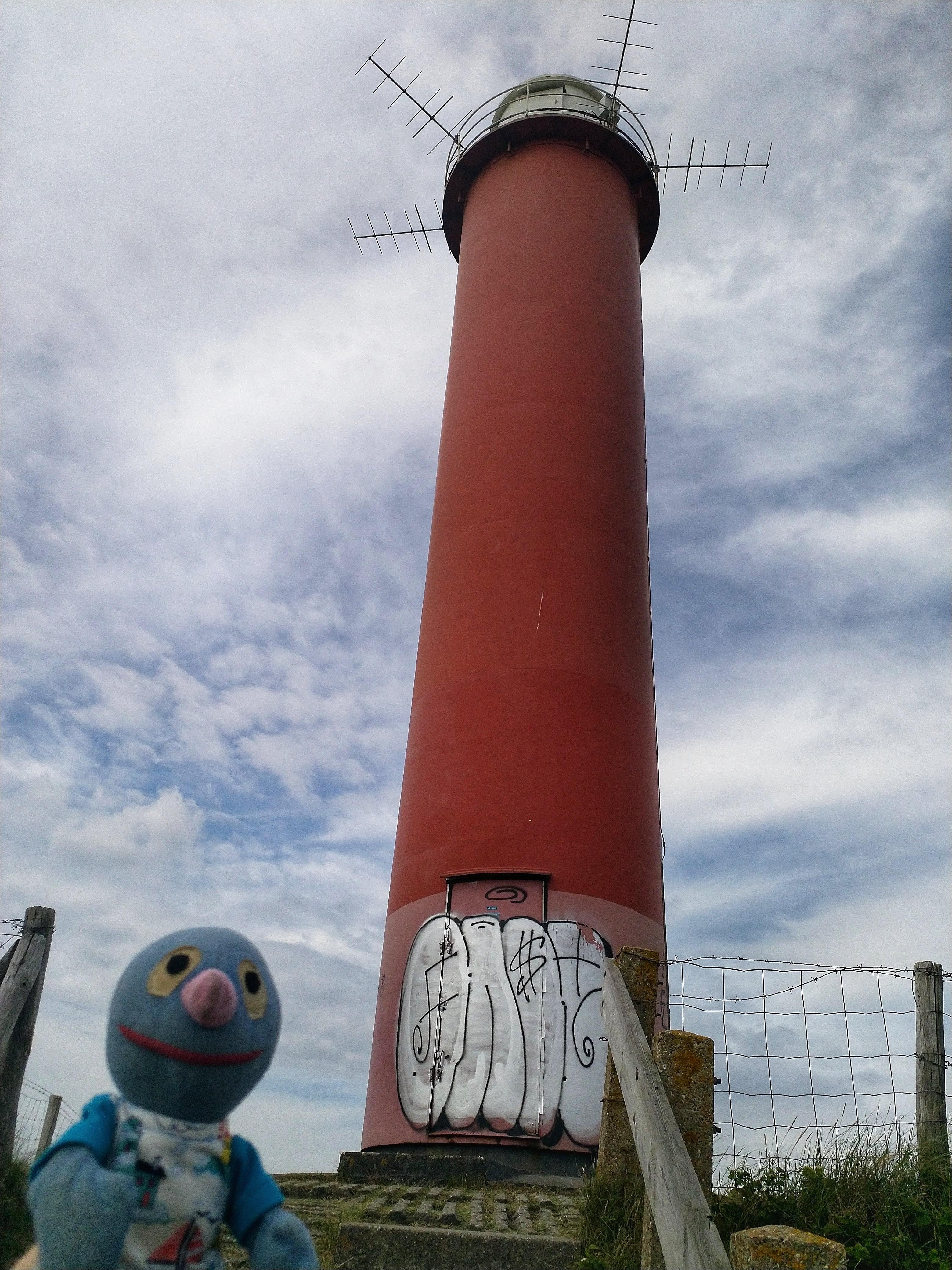 Nach nur wenigen Kilometern war das gewünschte Ziel auch schon zu sehen: Der Leuchtturm Groote Kaap, den wir auf der Rückreise von Texel schon einmal aus der Ferne fotografiert hatten. Als wir näher kamen, gab es zunächst zwei Gruppenfotos: