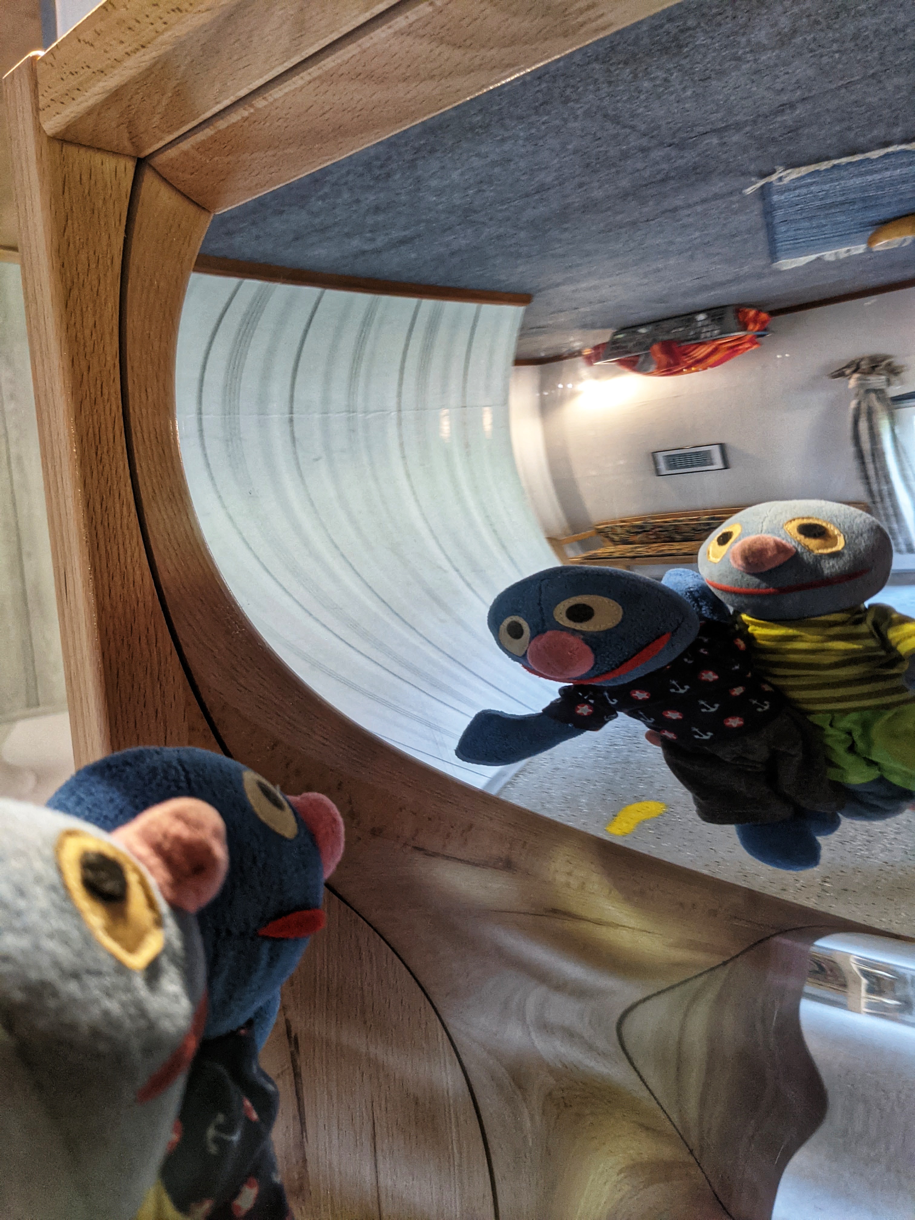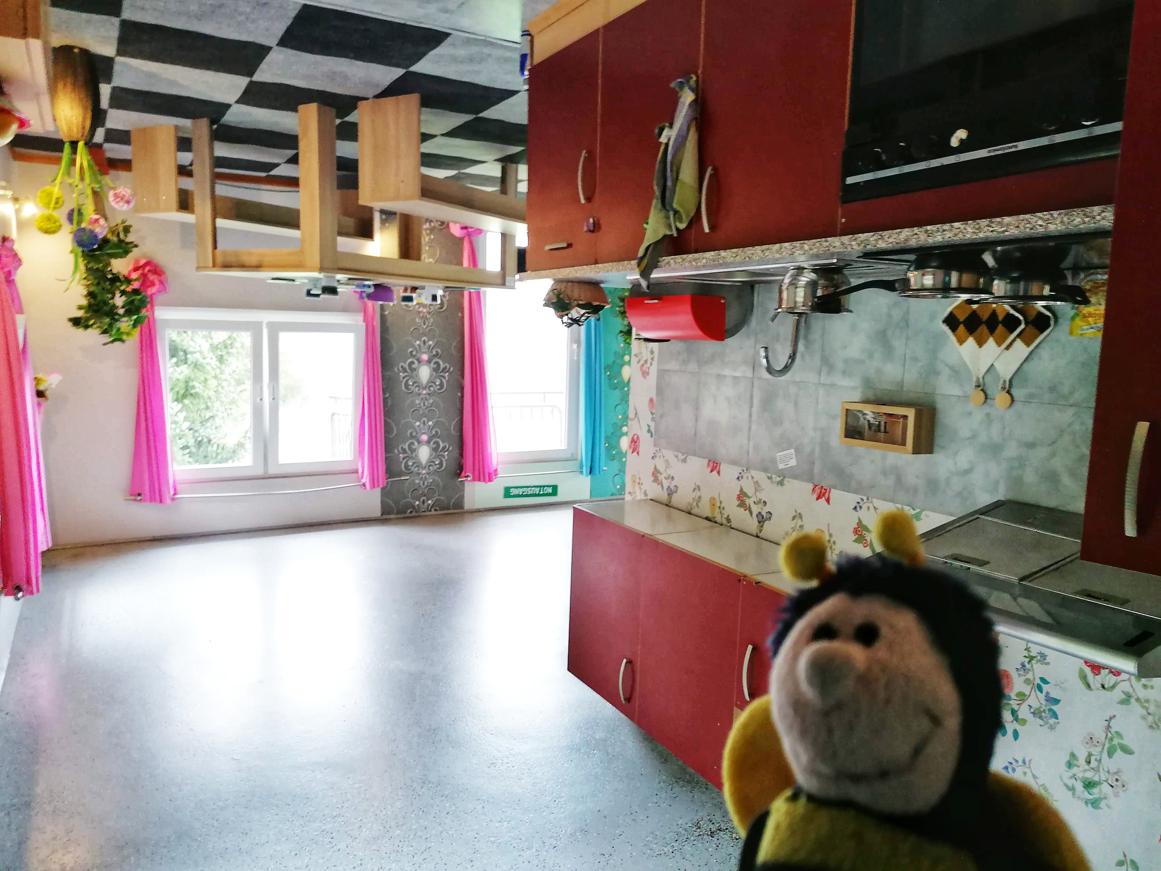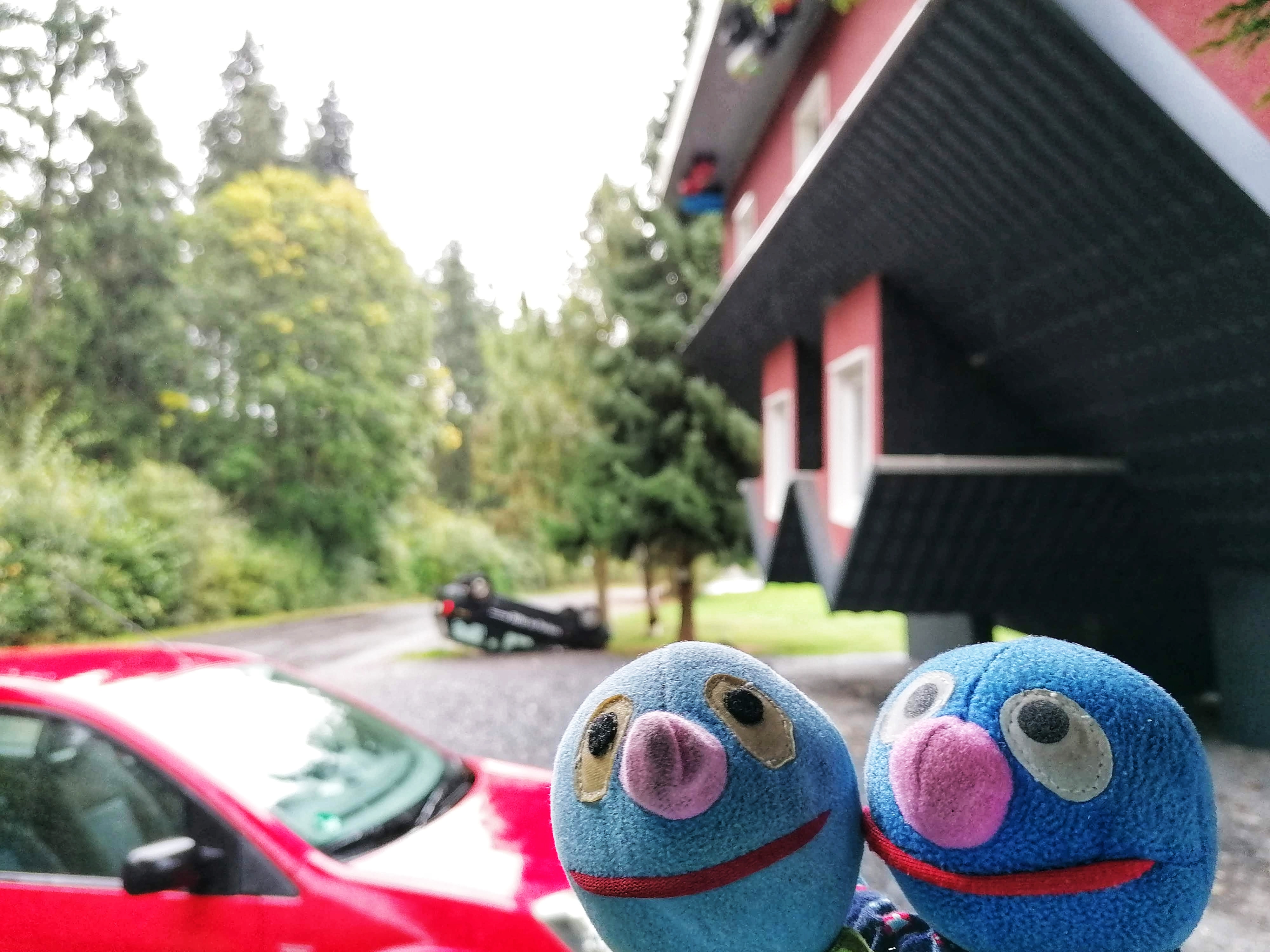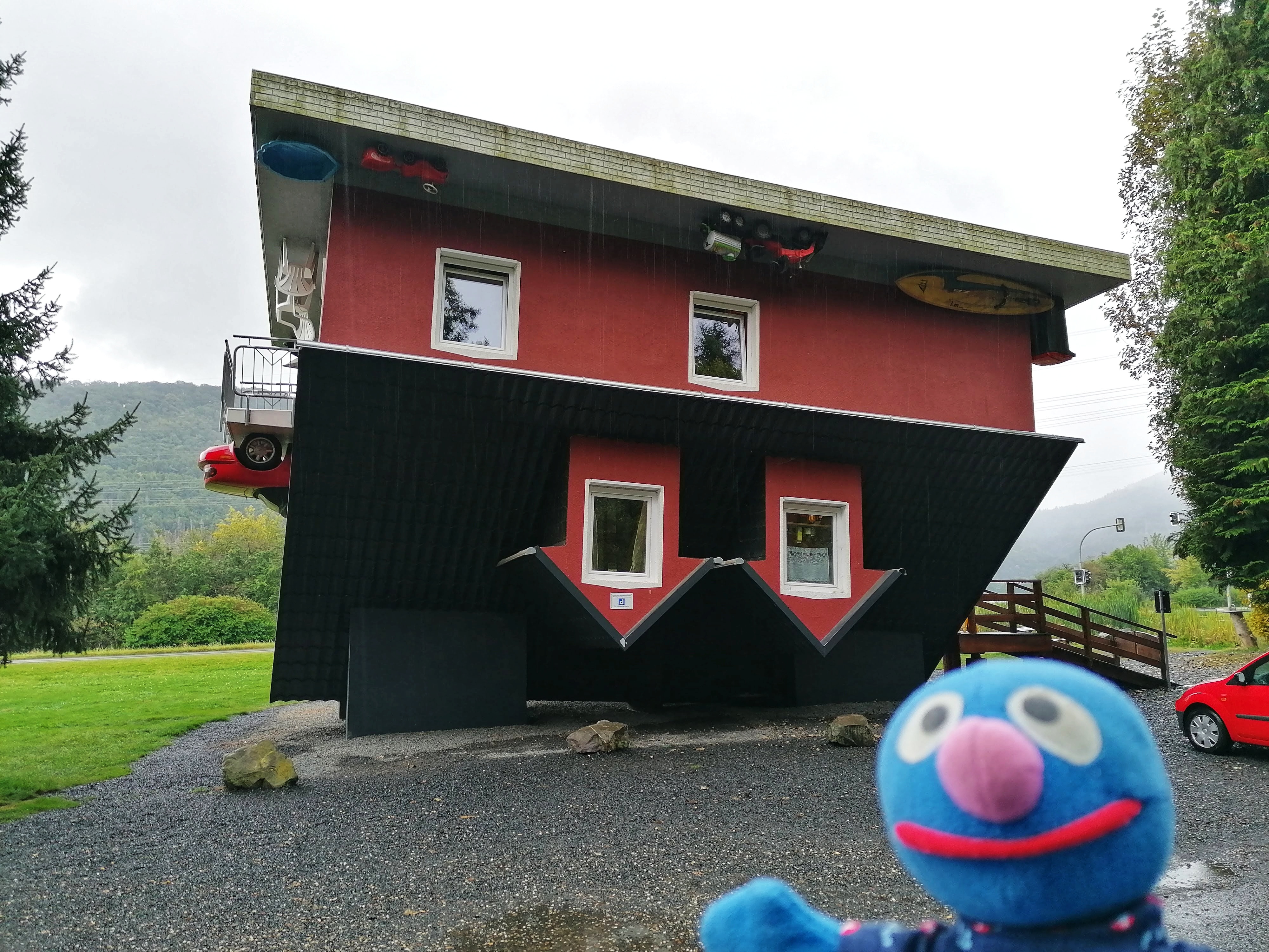 Irgendwie war das Wetter nicht Vertrauen erweckend und so kehrten wir schließlich zum Auto zurück. Richtig Lust, wieder in die Ferienwohnung zurück zu fahren, hatten wir irgendwie noch nicht und so beschlossen wir, dem „Tollen Haus“ noch einen Besuch abzustatten. Das Haus und alles darin steht auf dem Kopf.