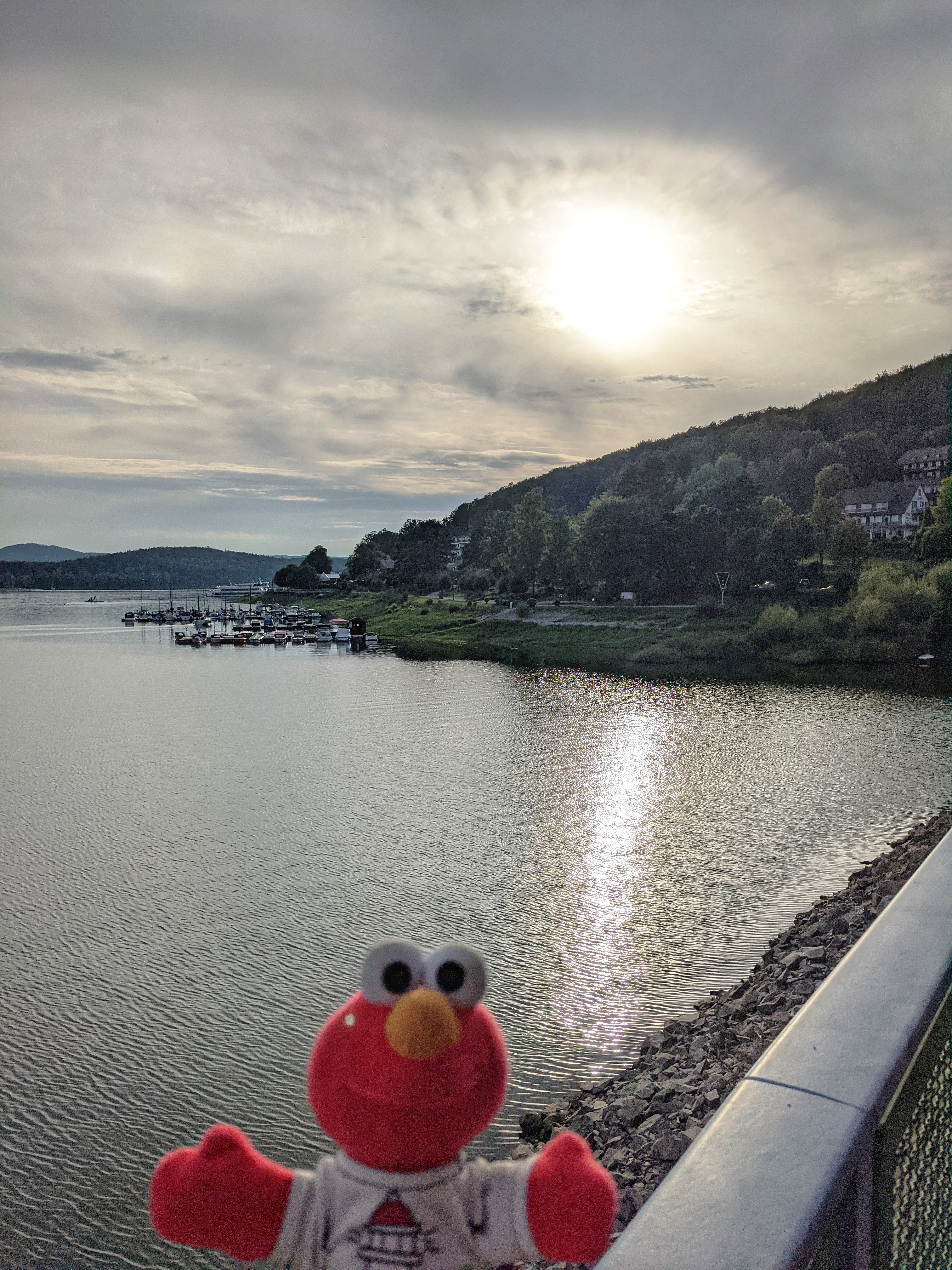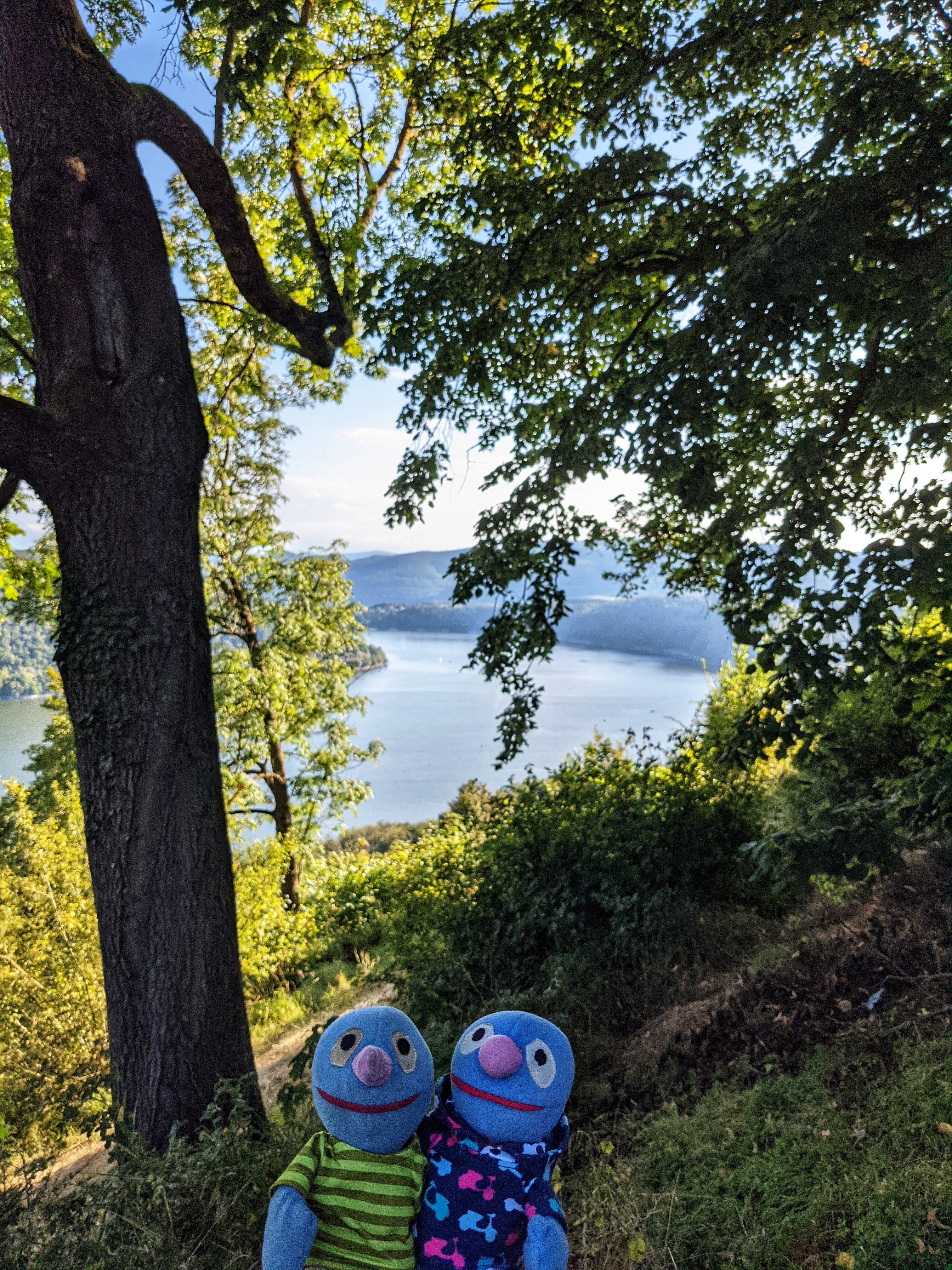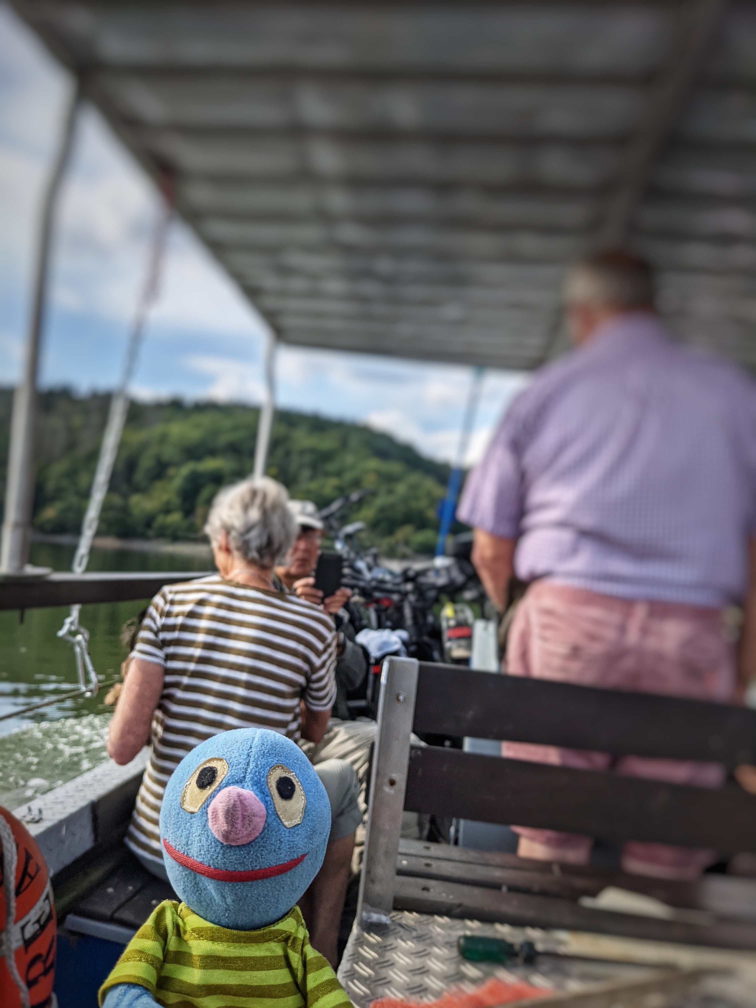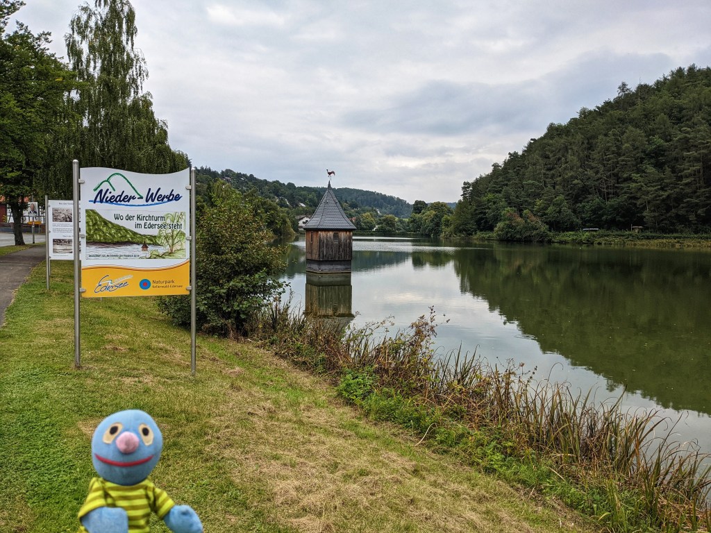 Wie ihr euch vorstellen könnt, waren Schatzi-Moppel am Montag ziemlich im Eimer. Zunächst haben sie daher nach dem Frühstück im öffentlichen Supermarkt eingekauft und entspannt. Irgendwie hatten sie aber doch Lust, etwas zu unternehmen und so fuhren wir mit dem Auto nach Scheid, einem Ort auf einer Halbinsel im Edersee.