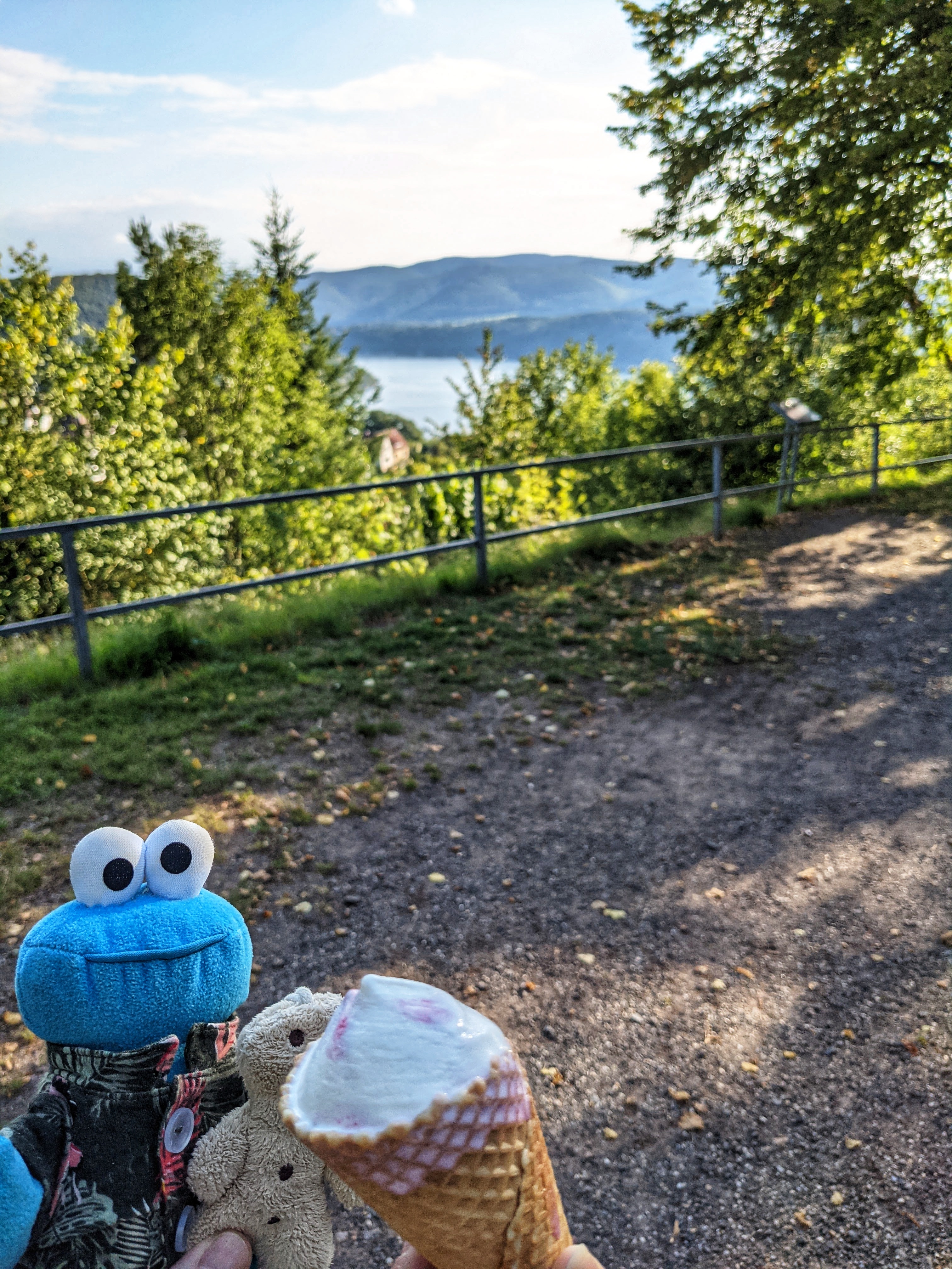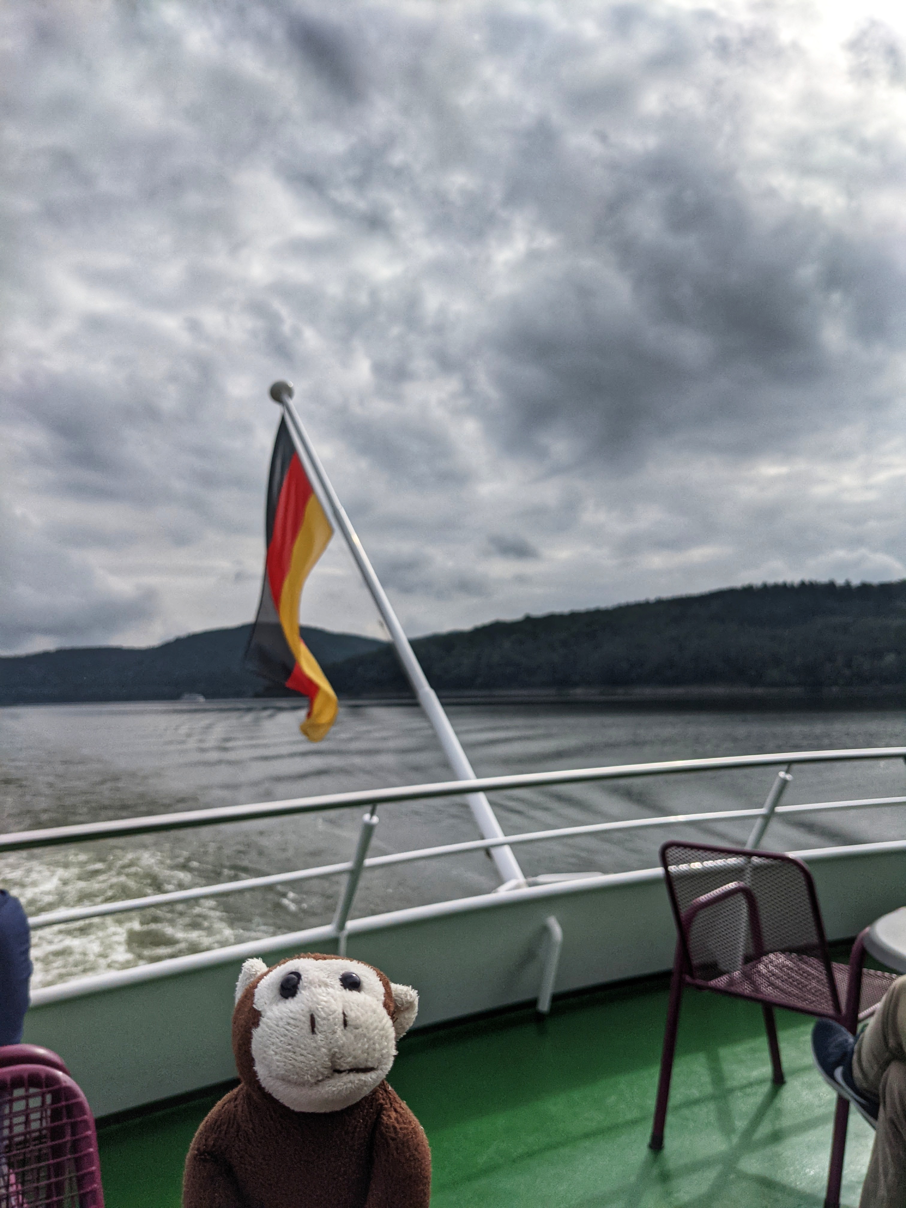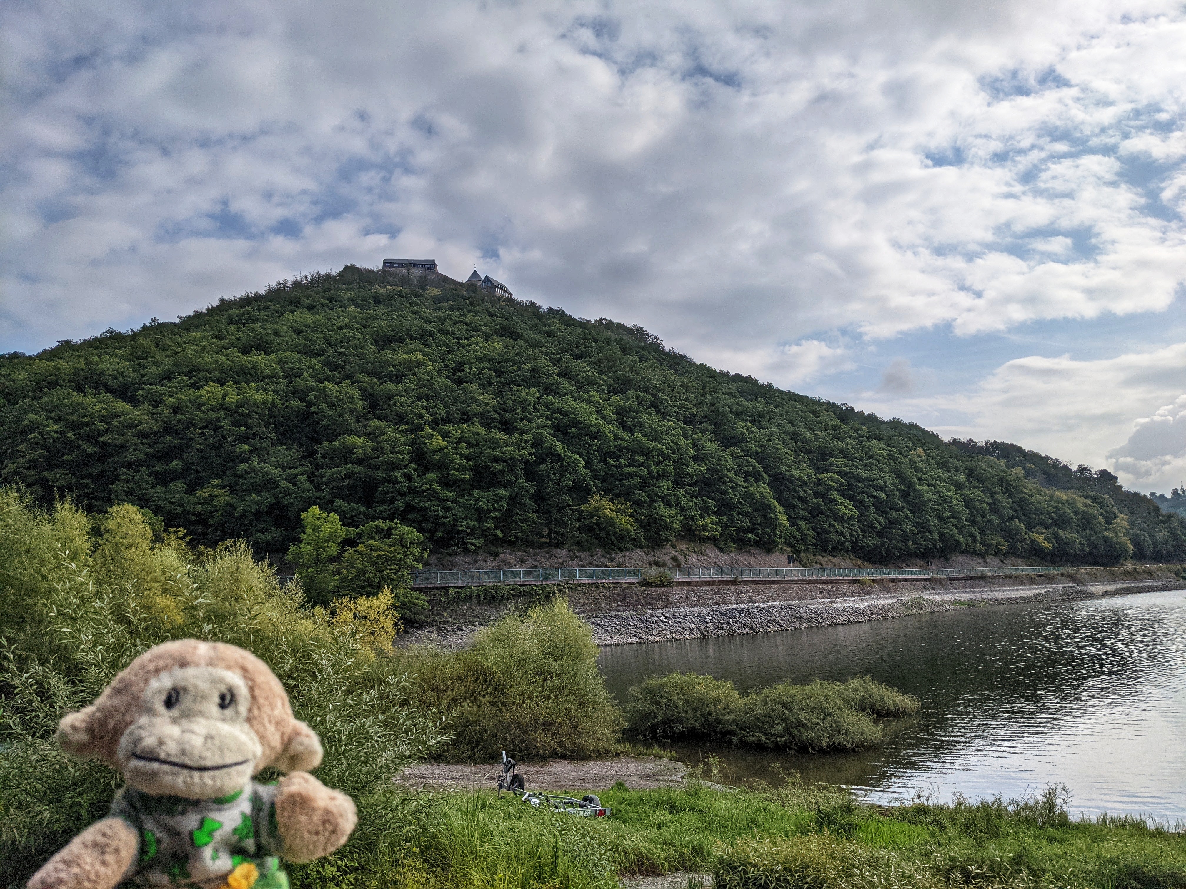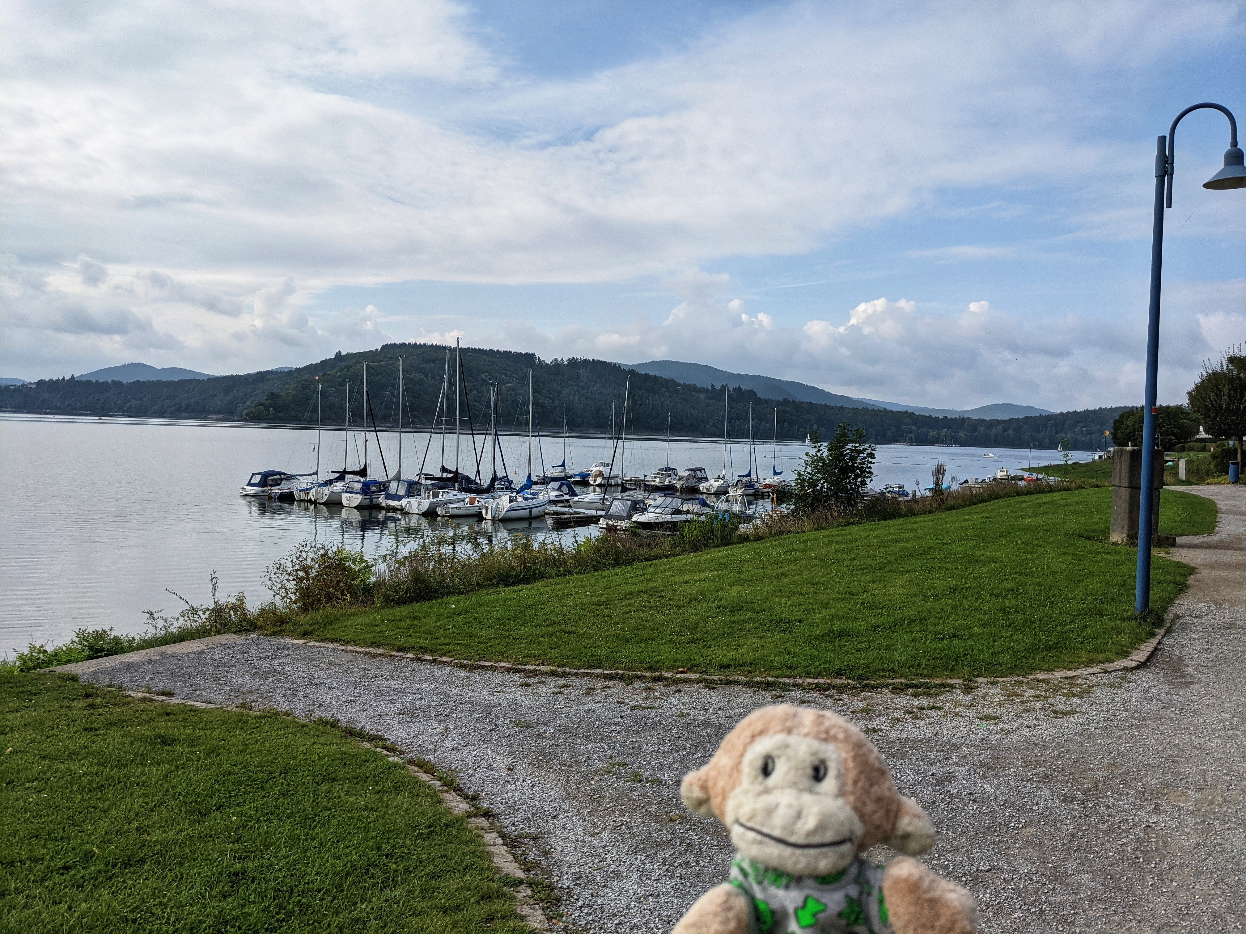 Wie ihr euch vorstellen könnt, waren Schatzi-Moppel am Montag ziemlich im Eimer. Zunächst haben sie daher nach dem Frühstück im öffentlichen Supermarkt eingekauft und entspannt. Irgendwie hatten sie aber doch Lust, etwas zu unternehmen und so fuhren wir mit dem Auto nach Scheid, einem Ort auf einer Halbinsel im Edersee.