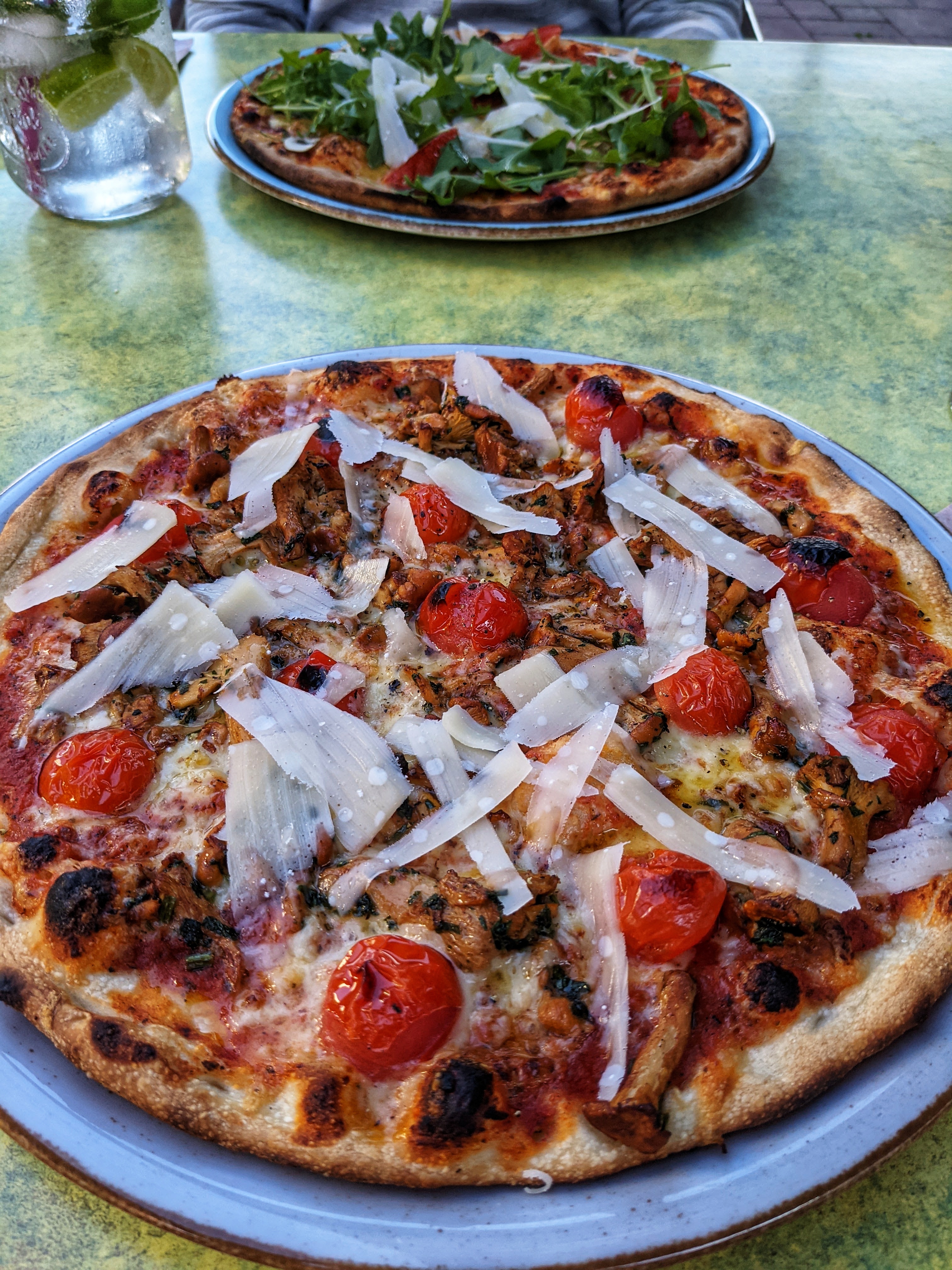 Anschließend gingen Schatzi-Moppel für ein frühes Abendessen in die örtliche Pizzeria, wo sie nur aufgrund der frühen Uhrzeit einen Tisch bekamen und sich die Pizza schmecken lassen konnten.