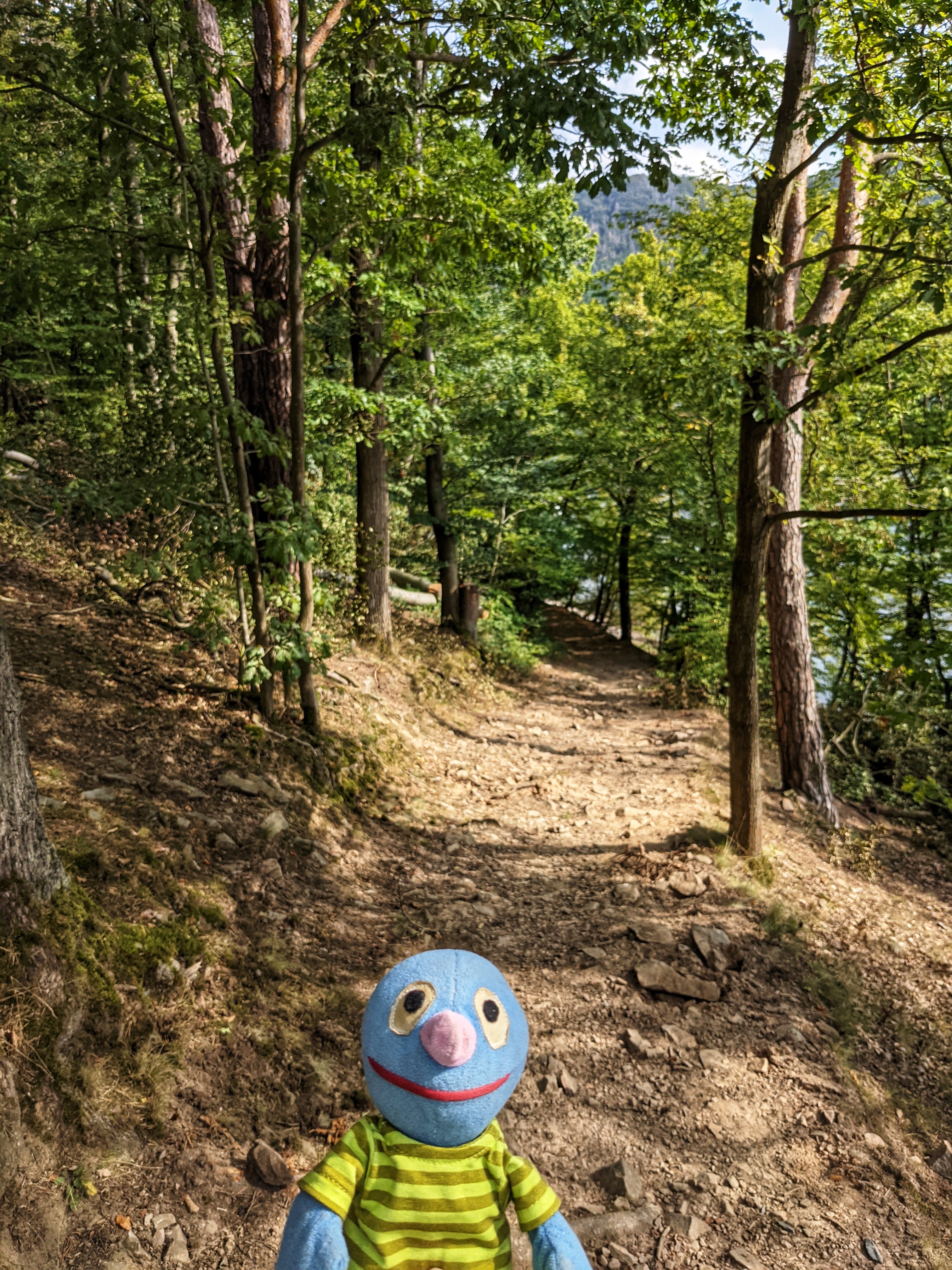 Schatzi-Moppel waren ziemlich fertig und wollten den Plan, die nächste Etappe bis nach Waldeck zu gehen, eigentlich verwerfen und den Bus nehmen. Allerdings hätten sie auf diesen 1,5 Stunden warten müssen und ein Wegweiser versprach, dass Waldeck weniger als 7 km entfernt sei, also trotteten sie doch weiter und wurden mit tollen Aussichten belohnt.