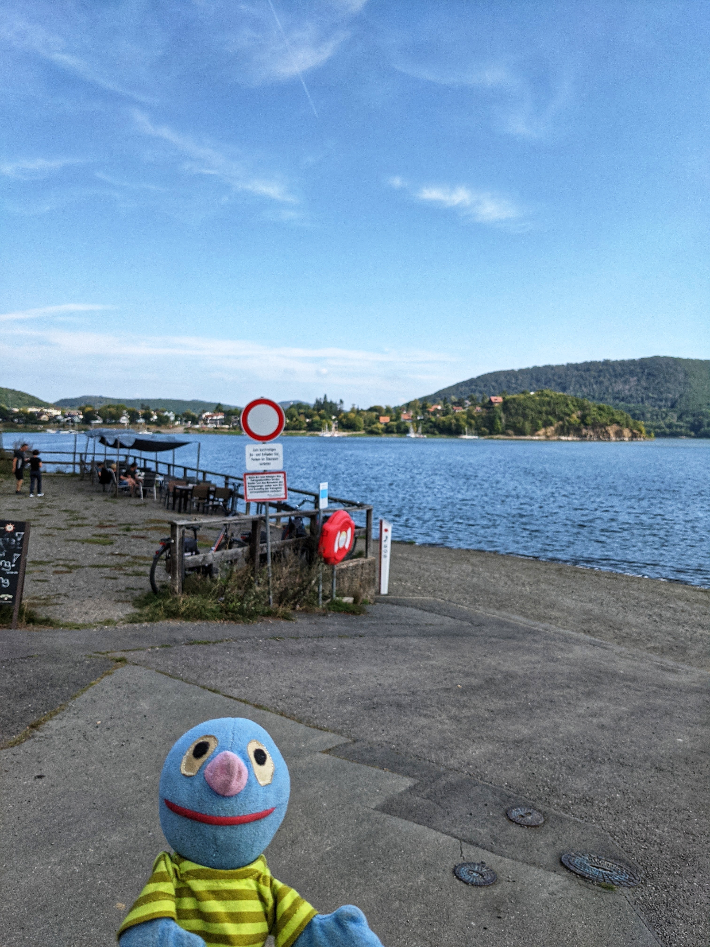 Unten angekommen, gingen wir am See entlang zum Schalter der Fähre, die uns auf die andere Seeseite des Sees nach Bringhausen bringen sollte.