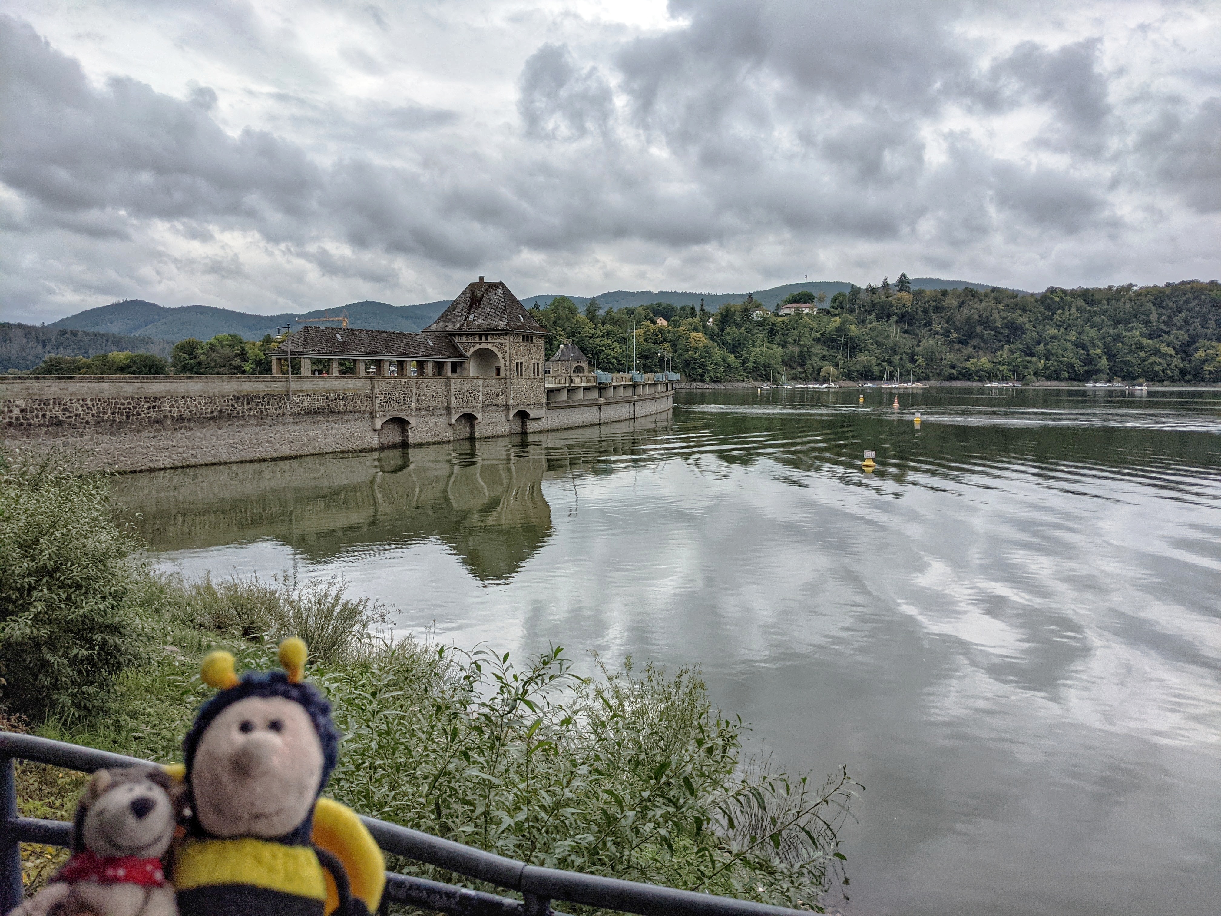Wie befürchtet, war das Wetter am Mittwoch ziemlich schlecht. In einer kleinen Regenpause am Vormittag waren Schatzi-Moppel im örtlichen Feinkostladen und in einer weiteren beim Griechen zum Mittagessen. Am Nachmittag wagten wir uns nochmal richtig raus und fuhren zur Talsperre hinunter, um uns die Füße zu vertreten und noch ein paar Fotos zu machen.