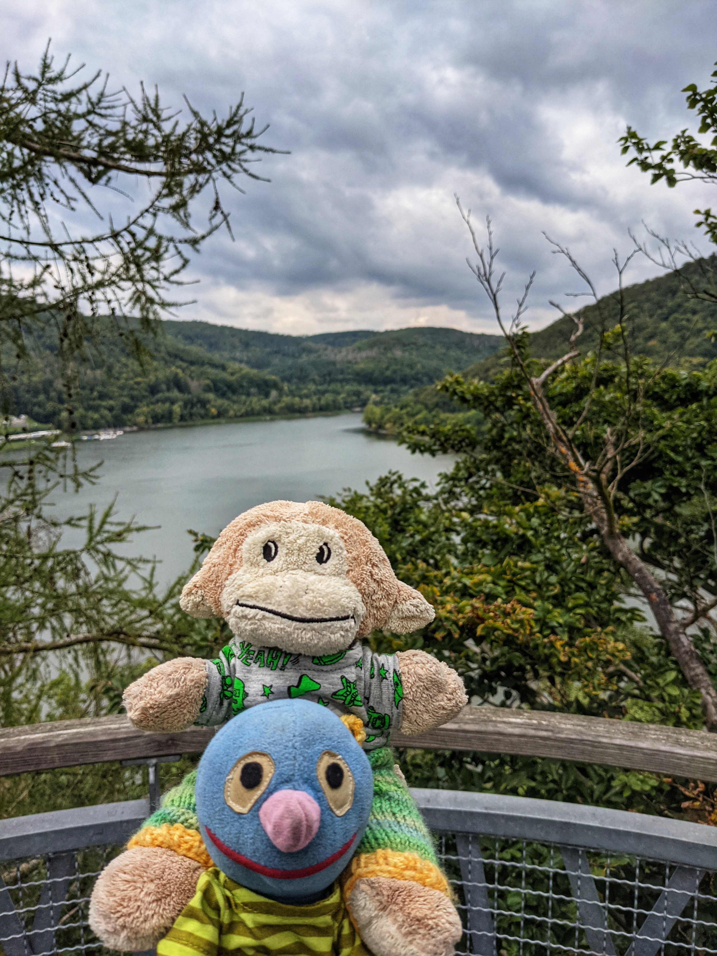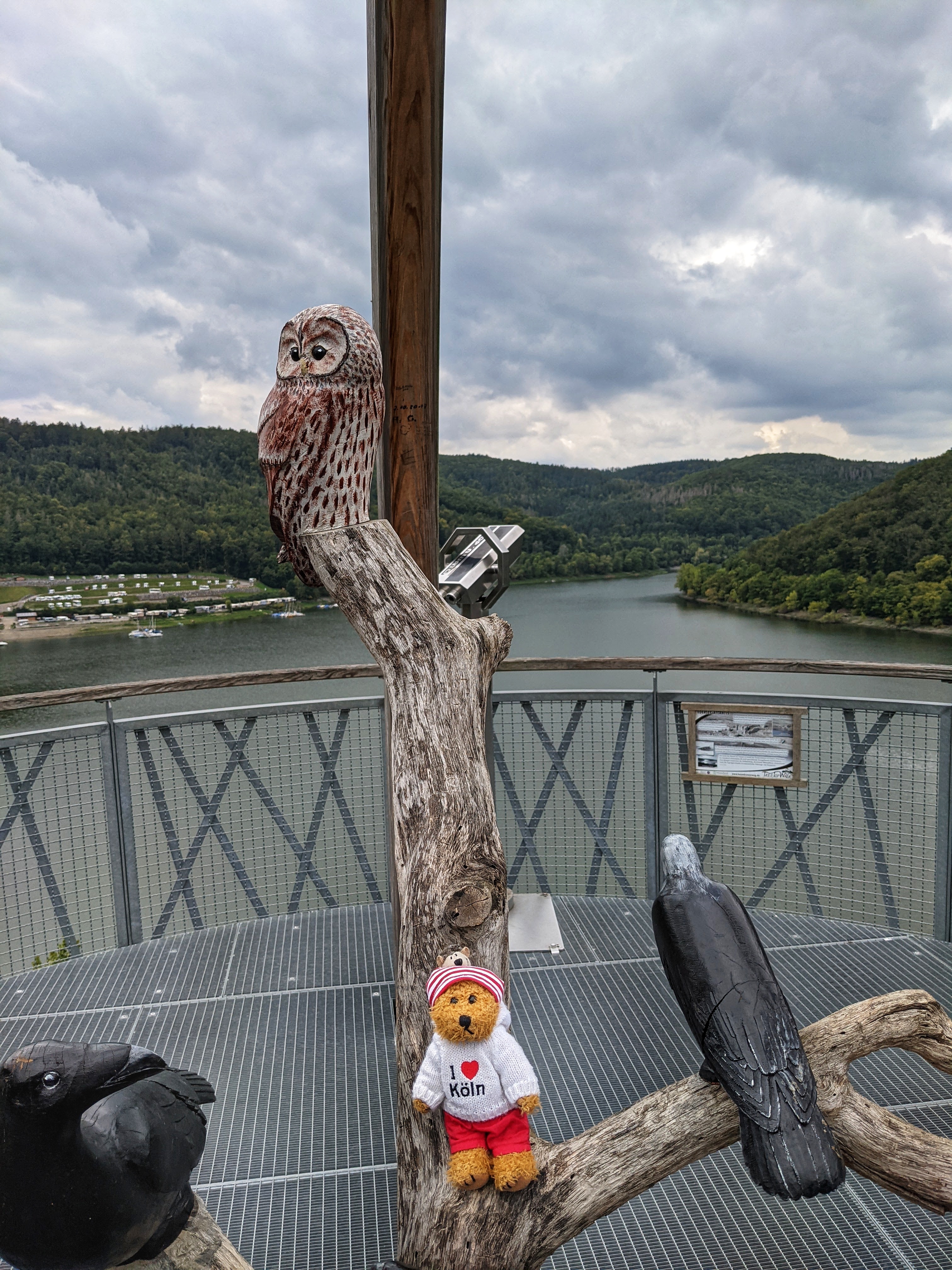Nachdem der Moppel also wohlbehalten an Land zurückgekehrt war, fuhren wir zum TreeTopWalk, dem Baumkronenweg am Edersee, der uns auch richtig gut gefallen hat.
