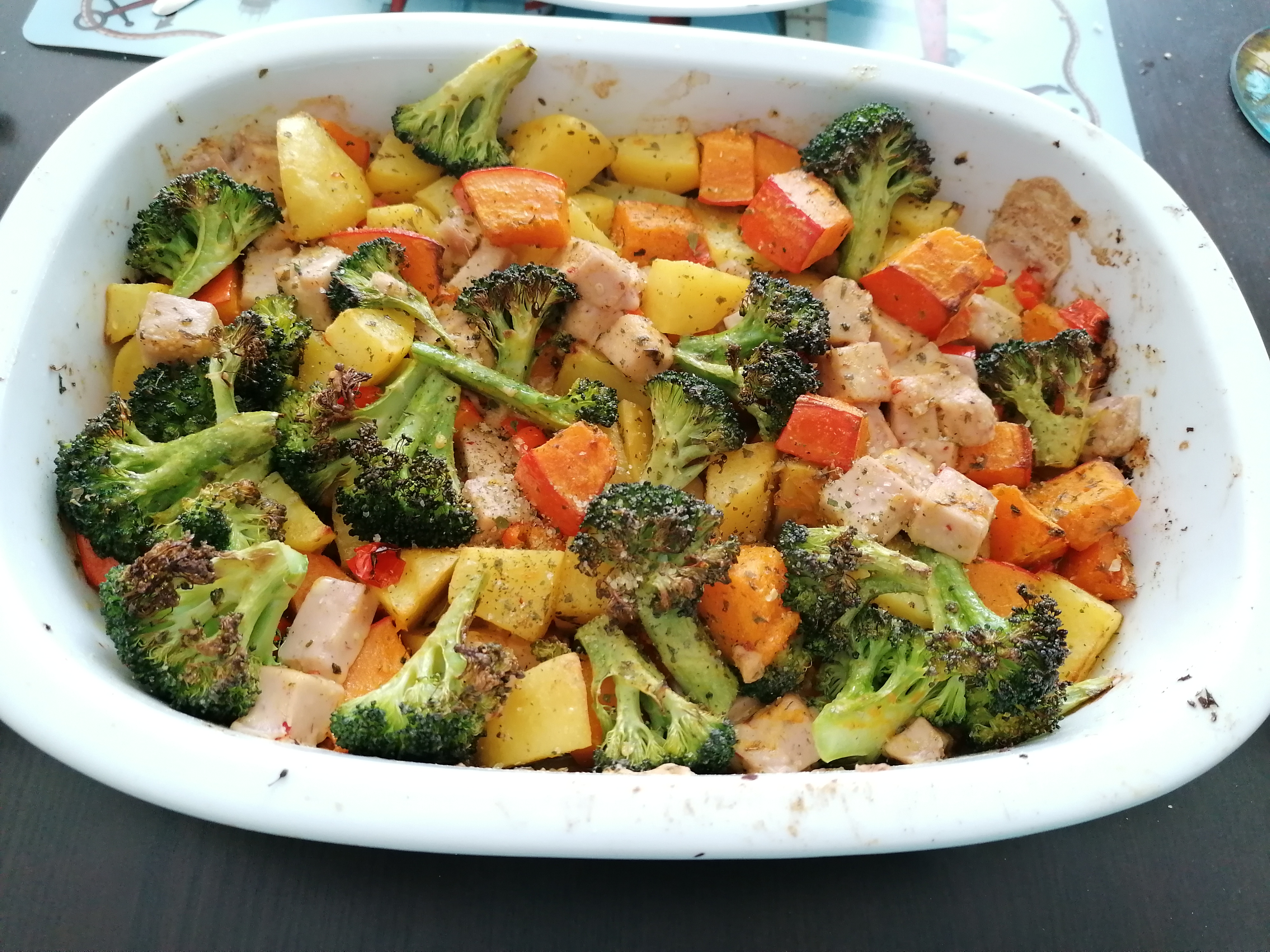 - Die Auflaufform wieder in den Ofen schieben und weiter 20 Minuten backen, bis das Gemüse durch, aber noch leicht bissfest ist