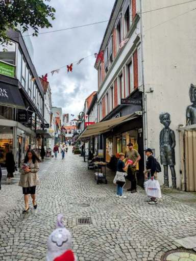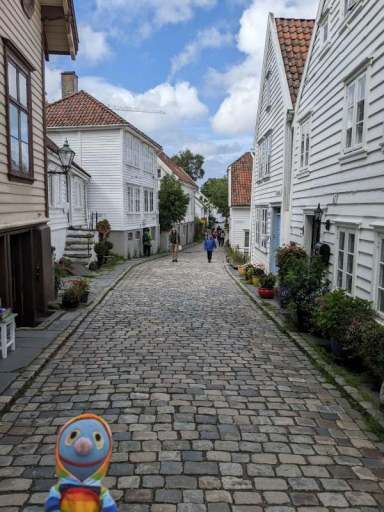 Auch an diesem Tag regnete und stürmte es viel. In der Mittagszeit fuhren wir mit dem Bus in die Innenstadt, wo wir etwas aßen und mehr oder weniger trocken durch Gamle Stavanger, die alte Innenstadt, schlenderten.