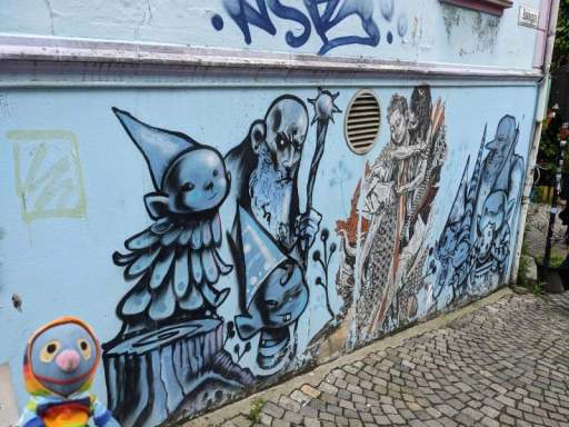 Wie befürchtet startete der Tag mit Regen, zu dem sich später auch noch kräftiger Wind gesellte. Das wäre definitiv kein angenehmes Wetter für unsere Wanderung gewesen. Im Laufe des Vormittags wurde daher nur kurz eingekauft. Erst am Nachmittag fuhren wir mit dem Bus in die Innenstadt. Bei mehr oder weniger starkem Regen machten wir ein paar Fotos von der Streetart und den bunten Gassen.