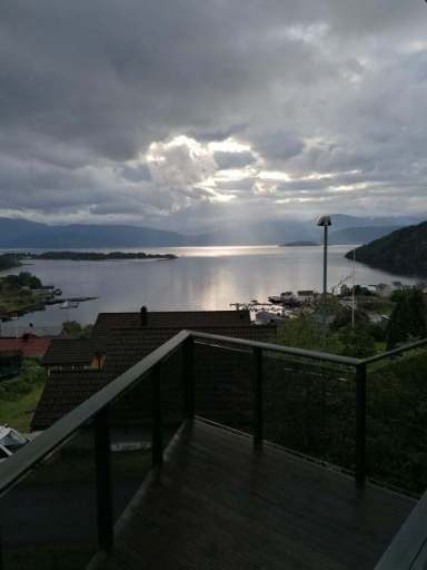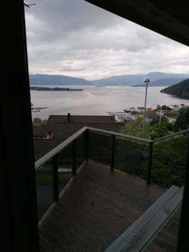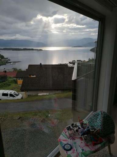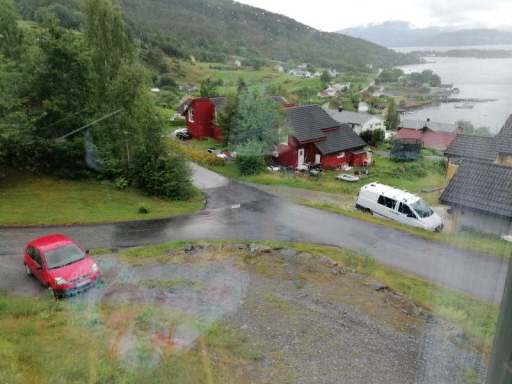 Natürlich gibt es noch viiiiel mehr Wasserfälle, aber die beiden lagen direkt an der Straße und waren riesig. Und sehr beliebt, denn an den Parkplätzen war immer einiges los. Schließlich erreichten wir über enge und kurvige Straßen unsere nächste Ferienwohnung in Herand. An der geschotterten Auffahrt zur Garage musste unser Fiesta allerdings passen. Er kam nicht hoch und selbst mit angezogener Handbremse rutschten wir rückwärts runter. Wir beschlossen, dass es sich unten an der Auffahrt auch gut stehen lässt. Dann bezogen wir die Ferienwohnung und was soll ich sagen? Die Aussicht vom Wohnzimmer war der Hammer. Bester Blick auf den Regen, ich meine den Hardangerfjord, überhaupt.