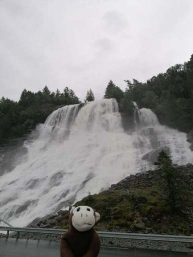 Nach einer Weile erreichten wir den ersten großen Wasserfall auf unserer Strecke, den Langfossen.