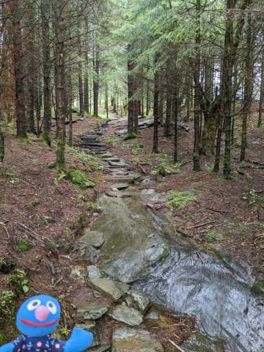 Nachdem es heute zumindest etwas weniger regnen sollte, starteten wir am Vormittag in die am Vortag entdeckte Wanderung Kulturstien. Die war richtig cool, aber aufgrund des vielen Regens der letzten Tage alles andere als leicht. Die Wege waren rutschig und teilweise von Bachläufen vereinnahmt.