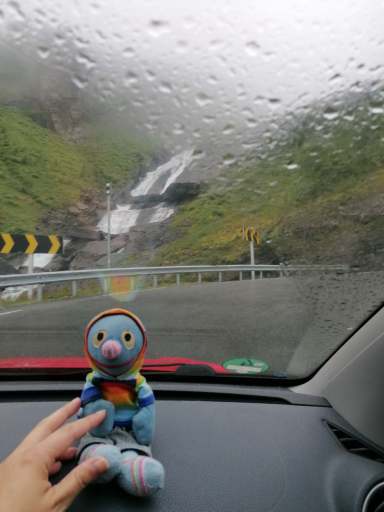 Anschließend ging es los Richtung Norden. Auf dem Weg zu Fähre ist uns noch ein Wasserfall an einer scharfen Kurve begegnet, an der man leider nicht anhalten konnte. Die Landschaft und das Wetter waren wieder sehr beeindruckend.