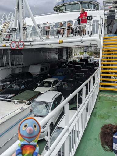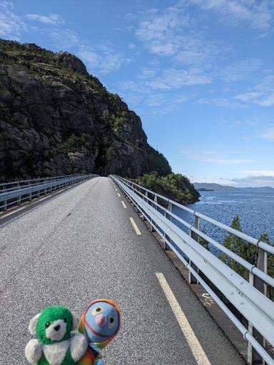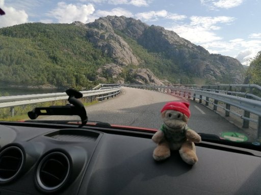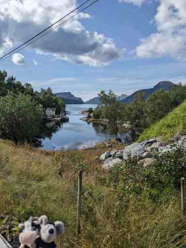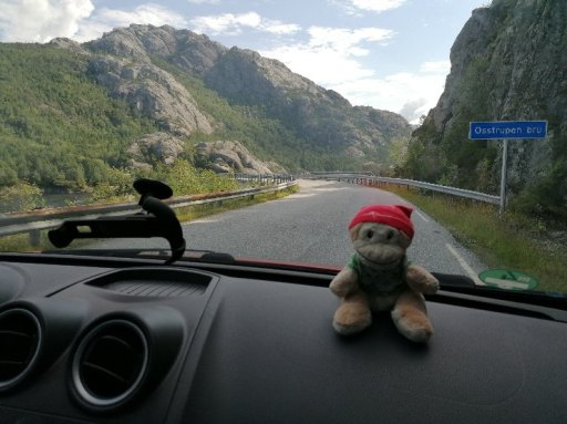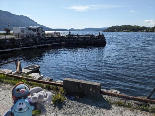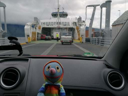 Kurz vor der Ankunft in Hella ertönte eine rein norwegische Durchsage, die wir nicht verstanden. Der Moppel ging vorsichtshalber zum Auto, während das Schatzi zur Toilette ging, weil die restliche Strecke von Hella nach Dragsvik kurz sein sollte. Als sie zurückkehrte, entdeckte sie unser Auto außerhalb der Fähre! Zum Glück war der Moppel schon dabei, wieder aufzufahren. Ein Schreck war es trotzdem.