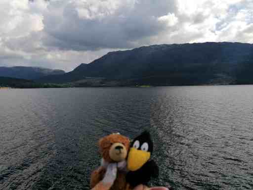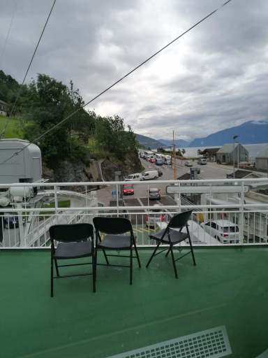 Nach einer Weile hatten wir Vangsnes erreicht, um von dort die Fähre nach Dragsvik zu nehmen. Da die Fähre unterwegs auch in Hella halten sollte, gab es entsprechend gekennzeichnete Spuren. Wir reihten uns bei Dragsvik ein, rollten an Bord und suchten uns einen Sitzplatz.