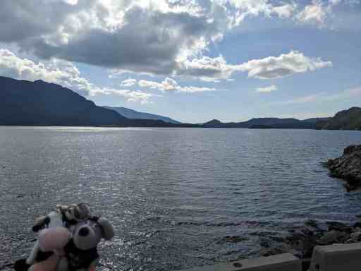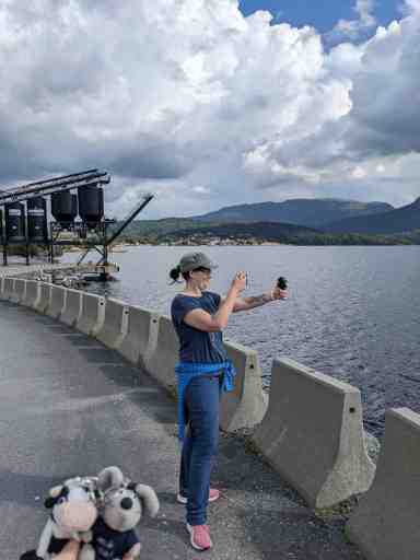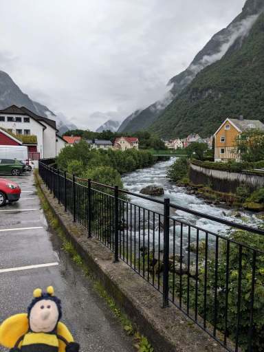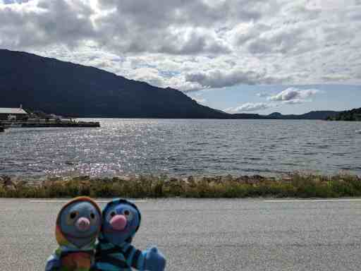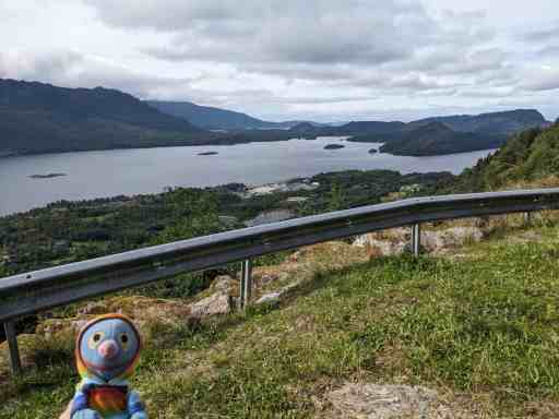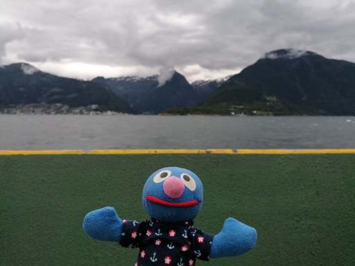 Irgendwann meldete sich der Hunger, weshalb wir in Høyanger in einem Restaurant etwas aßen. In diesem Ort begegnete uns auch eine sehr grummelige Frau. Sie war wohl übers Wetter verärgert, denn ihre Aussicht war eigentlich nicht sooo schlecht.