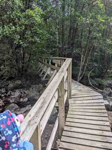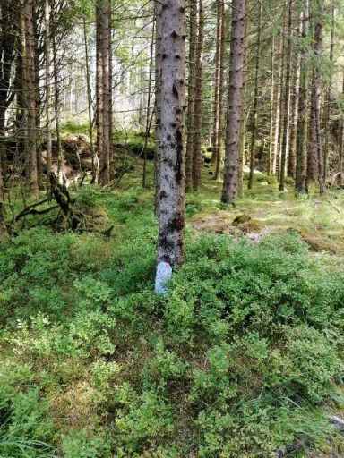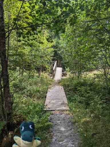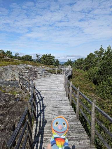 Zurück in Eikefjord suchten wir uns einen Parkplatz und gingen die recht entspannte kleine Wanderung Sørmarka durch den hübsch gestalteten Wald.