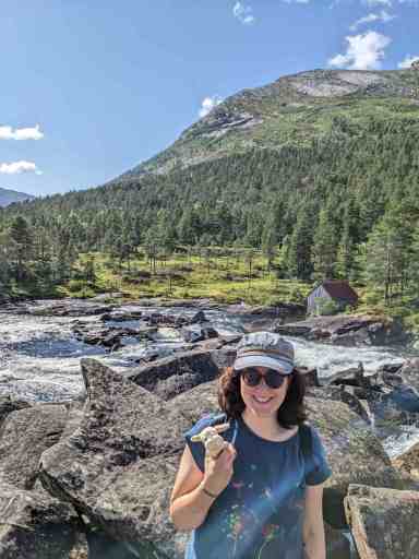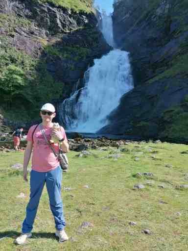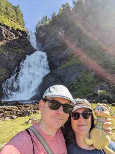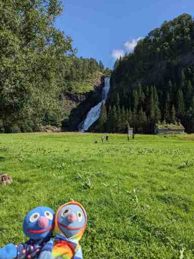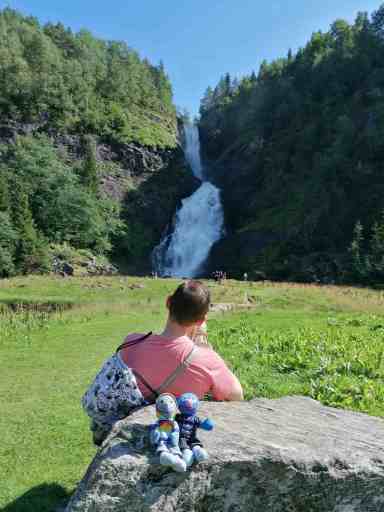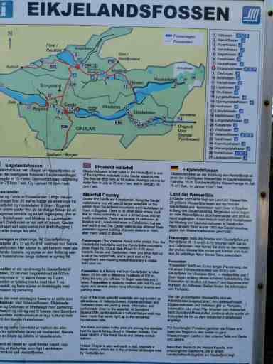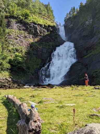 Für den letzten Wasserfall haben wir dank Google Maps wieder zwei Anläufe gebraucht, aber schließlich haben wir ihn gefunden: den Eikjelandsfossen.