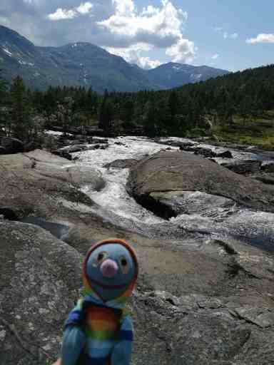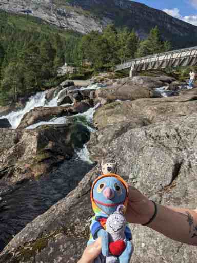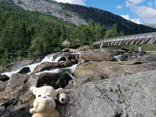 Danach kamen wir zum Likholefossen. Über diesen Wasserfall fuhrt eine schmale Brücke. Zu den besten Aussichten auf den Wasserfall hätte man vermutlich erwas klettern müssen, aber das war uns zu gefährlich. War trotzdem schön.