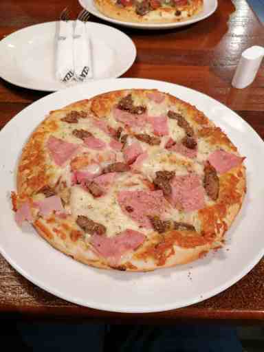 Danach waren Schatzi-Moppel schwer vom Hunger geplagt und eine Toilette war auch langsam dringend, deshalb kehrten wir auf dem Rückweg in Førde in einer Pizzeria ein, die ausschließlich recht ungewöhnliche und sehr käsige Beläge hatte.