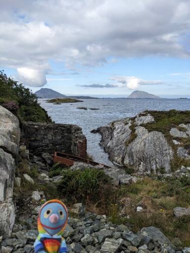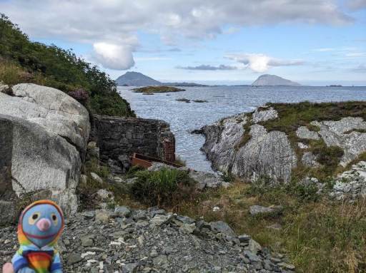 Und zack, war es August. Wir reisen also seit über 2 Monaten durch die Gegend. Verrückt. An diesem Tag jedenfalls fuhren wir nach Florø an der Küste. Wir wollten das Meer sehen und ein bisschen einkaufen. Das mit dem Meer war zunächst etwas schwierig, aber schließlich fanden wir ein Eckchen neben einem Industriegelände (nicht im Bild).