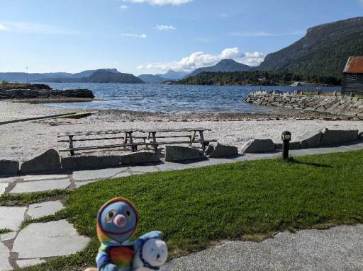 Heute war schon unser letzter Tag in Eikefjord. Wie schnell dann doch die Zeit verging! Am Vormittag war es ziemlich grau, weshalb niemand Lust hatte, etwas zu unternehmen. Stattdessen wurde herumgetrödelt und gespielt. Am Nachmittag ließ sich die Sonne blicken, sodass wir noch einmal in den Ort spazieren und später sogar auf der Terrasse sitzen konnten.