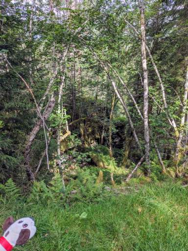 Nachdem das Wetter besser schien als angekündigt, brachen wir am späten Vormittag zu einem Spaziergang auf. Wir ließen uns von einer Wanderausschilderung leiten und kämpften uns plötzlich viele Höhenmeter hinauf.