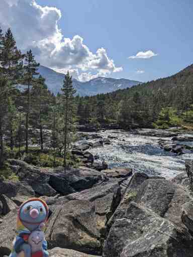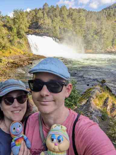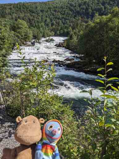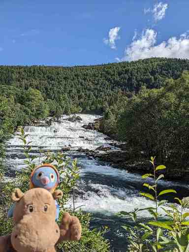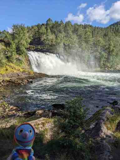 An diesem Tag kamen weder wir noch das Wetter in die Gänge. Erst nach dem Mittagessen brachen wir zu einer Drei-Wasserfall-Tour auf und wurden mit auflockernder Bewölkung belohnt. Der erste Wasserfall war der Huldefossen, den wir erst beim zweiten Anlauf fanden. Dafür war er sehr schön.