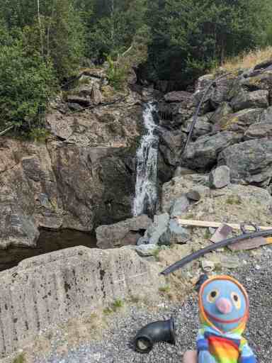 Auf dem Weg zum zweiten geplanten Wasserfall stolperten wir geradezu über einen Bonuswasserfall, den Viksdalenfossen, den wir vorher auf der Karte gar nicht gesehen hatten.