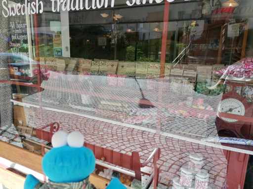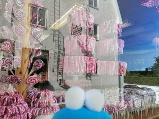 Nach einer knappen Stunde Fahrzeit hielten wir in Gränna, der Heimat der schwedischen Zuckerstangen (= Polkagrisar). Dort waren wir kurz in einem Laden, mussten den Krümel aber schnell wieder einfangen, bevor er im Zuckerrausch durch die Straßen eskalieren konnte.