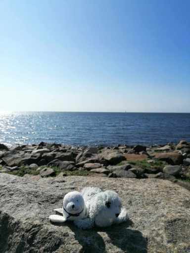 Nach einem kleinen Einkauf haben wir uns erholt, der Moppel auf der Couch während das Schatzi mit Raffi noch einen kleinen Spaziergang gemacht und tatsächlich ein bisschen Meer gefunden hat.